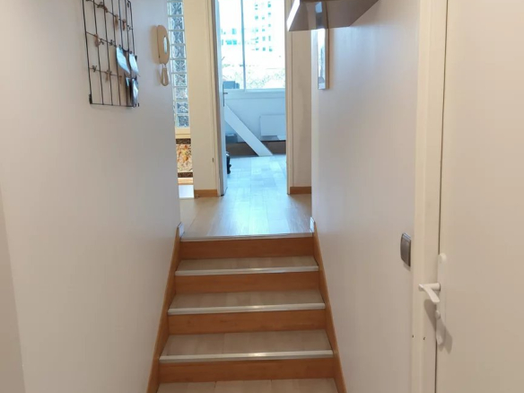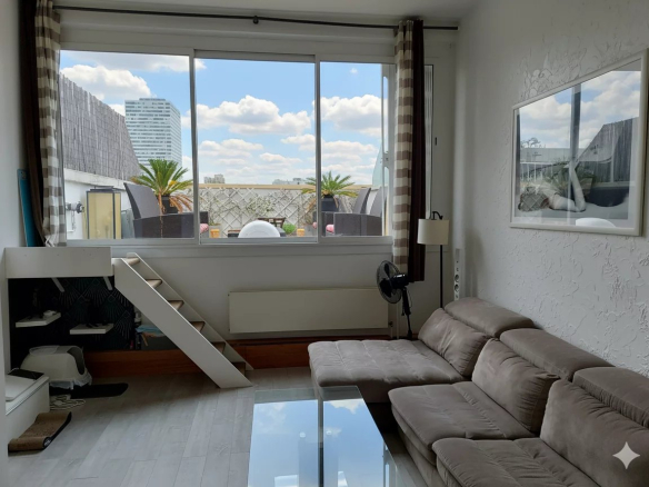 Au sommet d’un immeuble contemporain, au 5 ème et dernier étage, se dévoile un magnifique duplex lumineux de 112,60 m² loi carrez, offrant une vue dégagée et spectaculaire sur des monuments emblématiques de Paris, tels que l’Arc de Triomphe et la Grande Arche de La Défense.