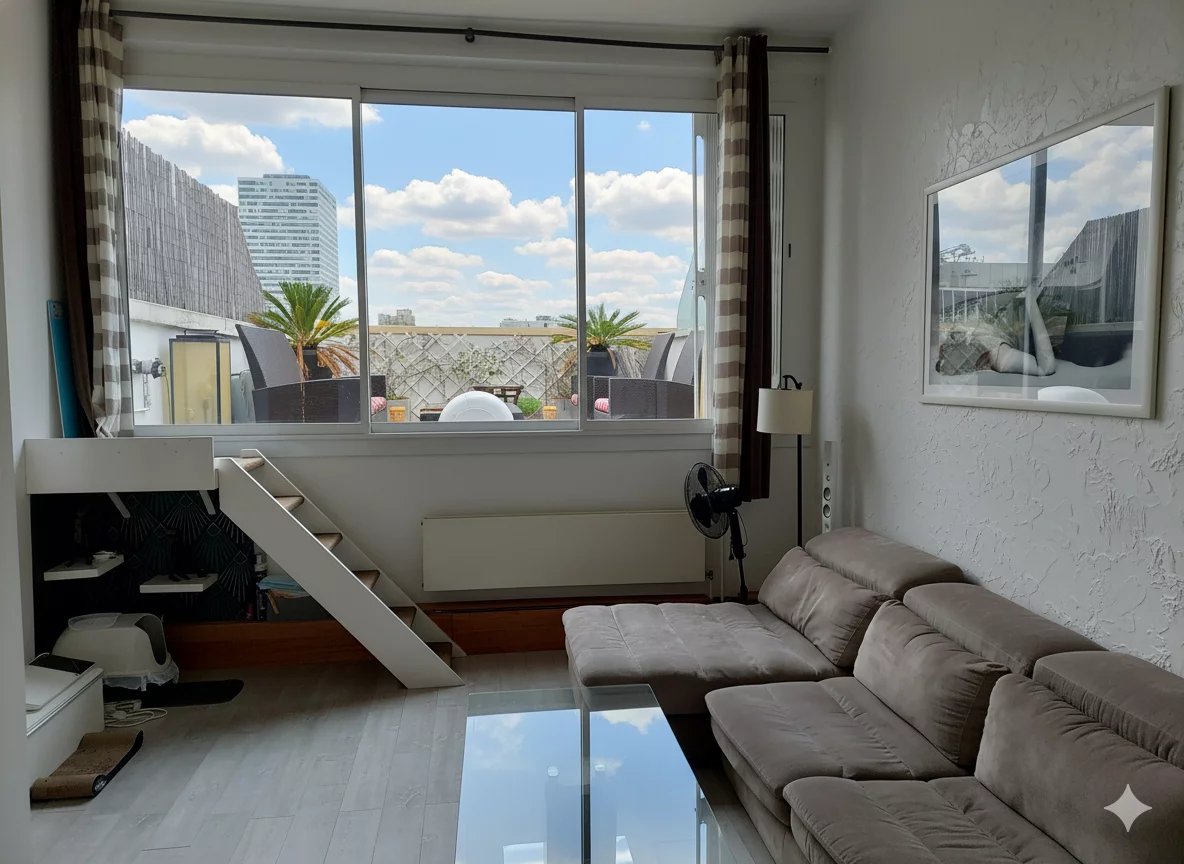 Véritable bien d’exception, conçu à la manière d’une maison suspendue, cet appartement atypique séduit par ses volumes remarquables, sublimés par une hauteur sous plafond de 4,50 mètres, sa luminosité omniprésente et un agencement pensé pour un confort de vie optimal.