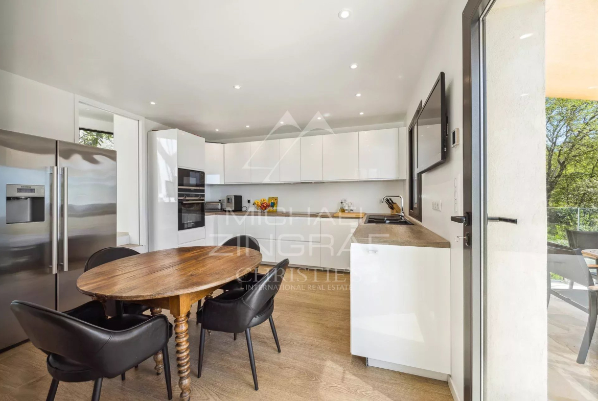 Elle propose 4 chambres en suite, un salon TV cosy, un garage , une belle piscine et un pool house. Chaque espace a été aménagé avec soin pour garantir un confort absolu.