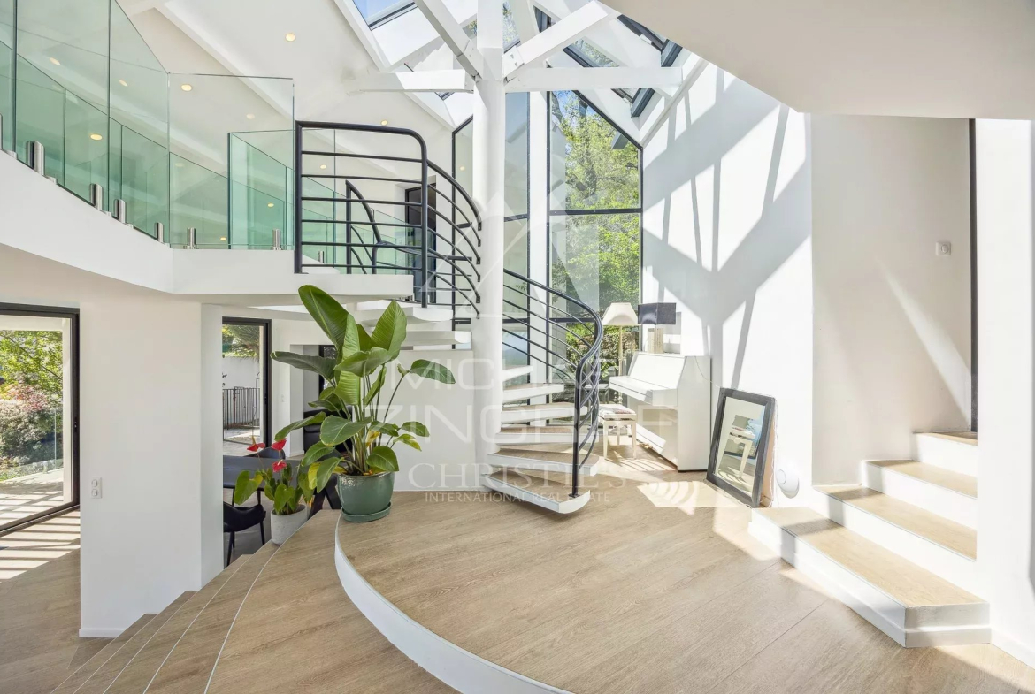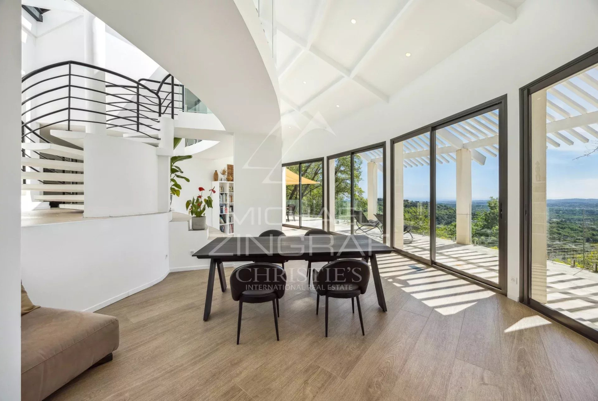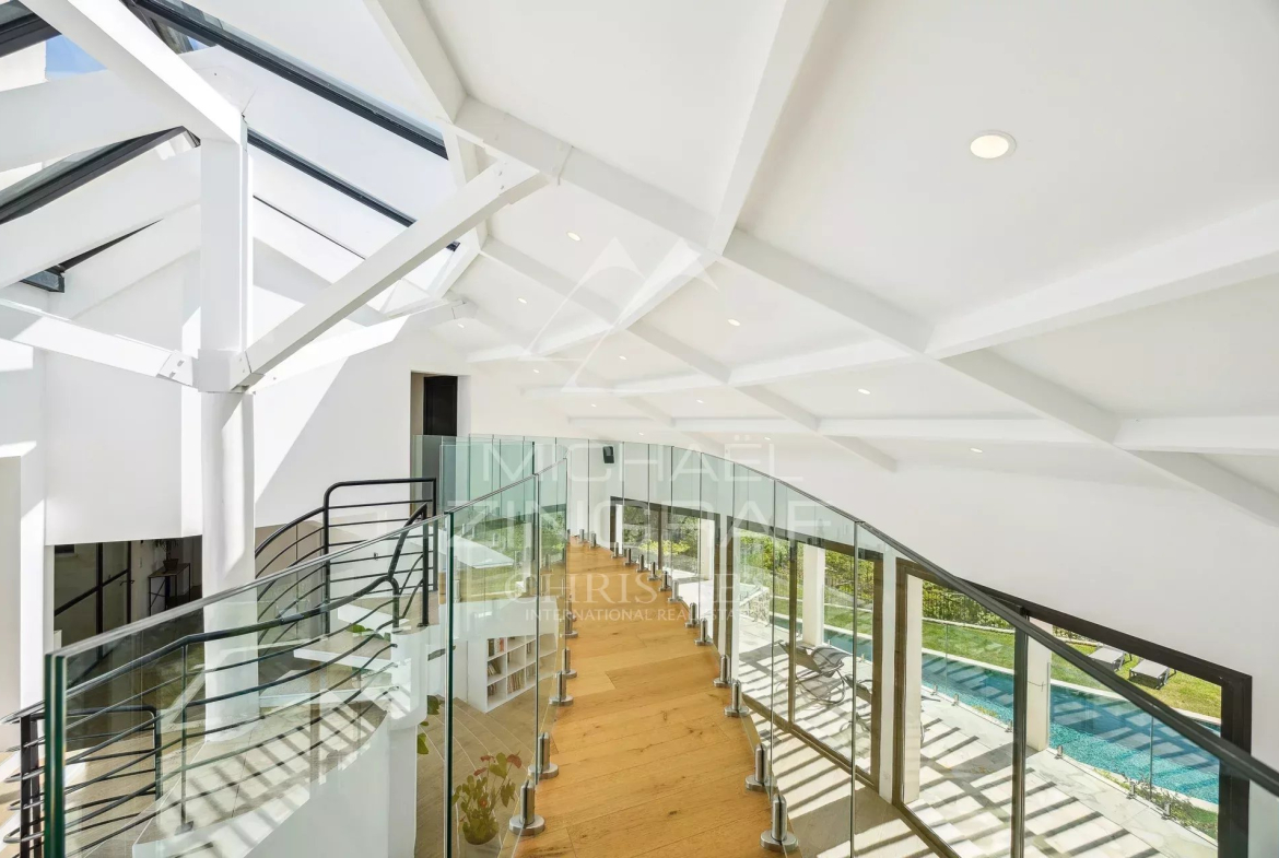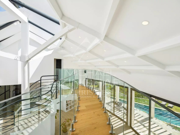 EXCLUSIVITÉ — Découvrez cette villa contemporaine au design audacieux, pensée pour offrir des vues panoramiques exceptionnelles grâce à ses grandes baies vitrées du sol au plafond.