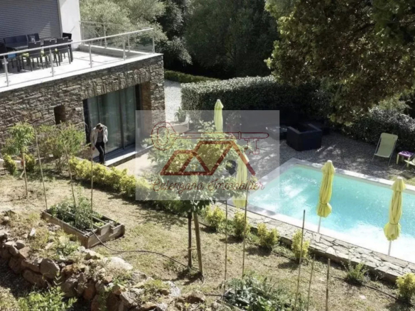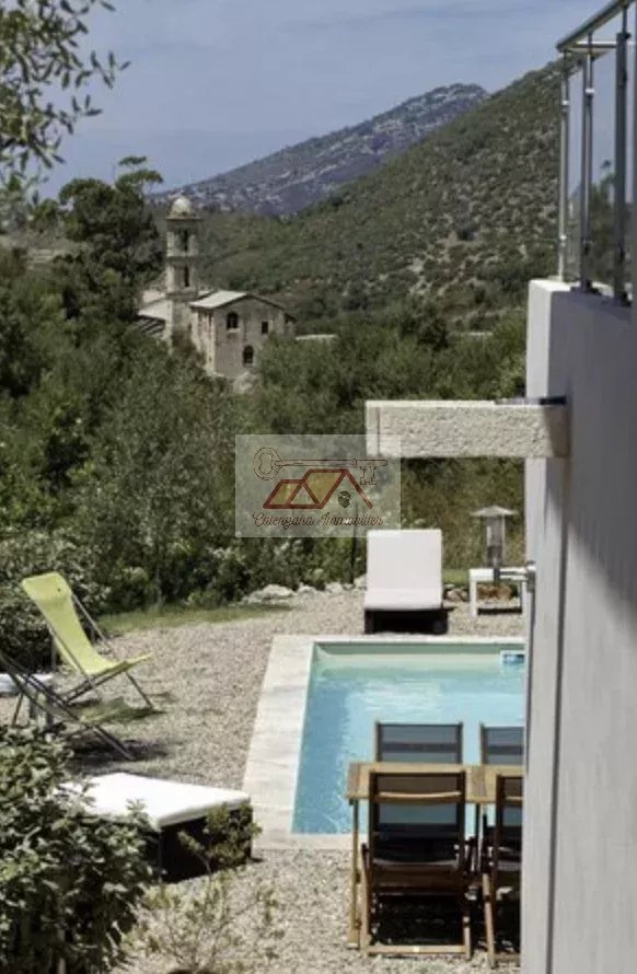Idéalement située sur la commune d’Oletta, nichée sur une colline, à seulement 5 minutes de Saint-Florent et ses plages, superbe villa d’architecte en R+1 bâtie sur une parcelle de 1250 m² avec piscine.