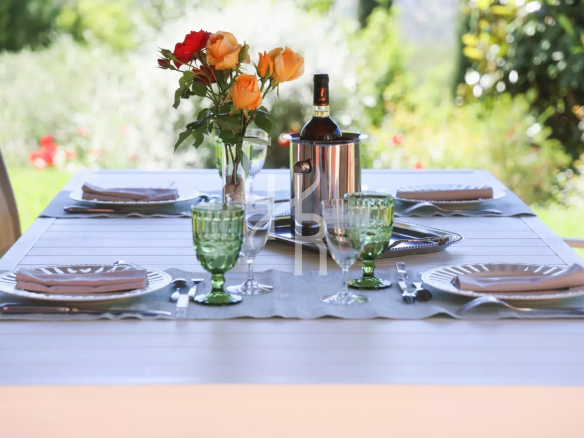 Une terrasse conviviale permet de prolonger les moments de convivialité, tandis qu’ une échappée mer depuis l’ étage vient sublimer la vue panoramique sur la nature environnante.