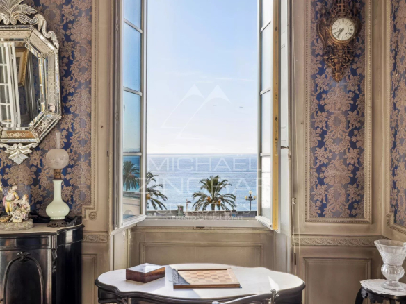 Avec ses hauts plafonds authentiques et ses moulures au mur dans les pièces de réception et les chambres, il comprend, une vaste entrée, une réception/une salle à manger chargée d’histoire de 58.38 m² avec une vue mer panoramique, une grande cuisine indépendante avec accès sur un balcon, 5 grandes chambres dont 3 chambres avec vue mer, un grand dressing, un cellier, une salle de bains avec WC et un WC invité. Appartement unique avec la proximité des plus beaux endroits de Nice comme la promenade des Anglais, la place Massena et le Port. 5 pièces mansardés complètent ce bien d’exception.