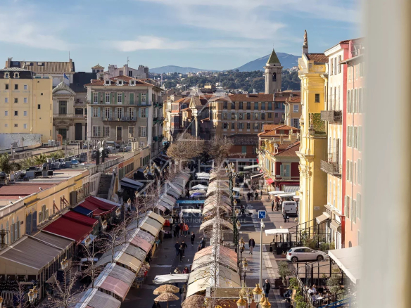 Michaël ZINGRAF Real Estate Nice vous présente au pied de la Colline du Château et avec une vue mer et ville à couper le souffle un appartement traversant de 265.23m² habitable dans un magnifique immeuble classique du 18ème siècle récemment restauré.