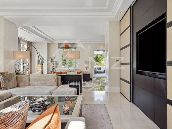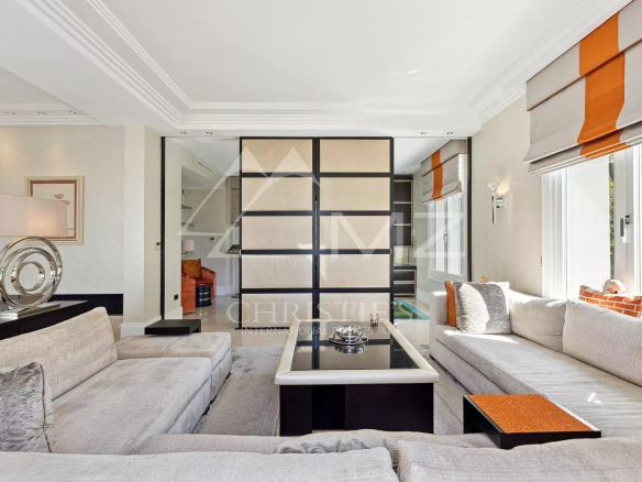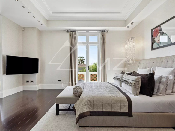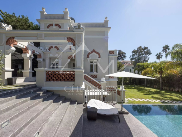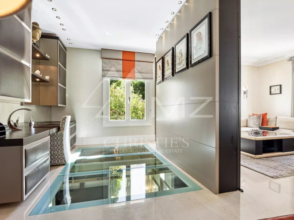 Cap d’Antibes, sur le Versant Ouest: à quelques minutes à pieds du port et des plages, cette étonnante villa datant de 1900 a été totalement rénovée de façon contemporaine avec des prestations et un design haut de gamme. La villa offre deux salons, un bureau, une salle à manger, une cuisine high tech, une buanderie, une suite de maître avec sa chambre, salon, dressing et salle de bain, et 3 chambres d’amis.