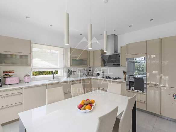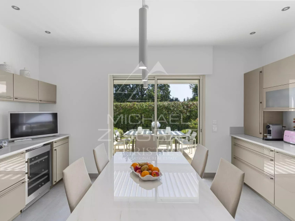 Au sein du charmant village de Mougins, cette agréable villa, principalement de plain-pied s’ouvre sur un jardin plat avec une grande piscine et sur une belle cuisine d’été.