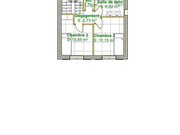 🔹 À l’étage : elle se compose de 2 chambres, d’une salle de bains et d’un toilette indépendant.