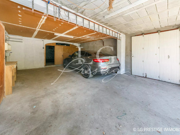 À rénover selon vos envies, elle se compose d’un séjour lumineux, de deux cuisines, de cinq chambres, d’un bureau, d’un grand garage et d’un vaste sous-sol.