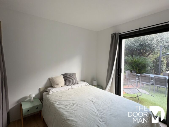 – Au rez de chaussée : entrée, salon-séjour, cuisine ouverte (Leicht) , chambre avec dressing, salle de bains, baignoire , douche à l’italienne et wc dont deux terrasses, dont une vue mer, l’autre vue montagne.