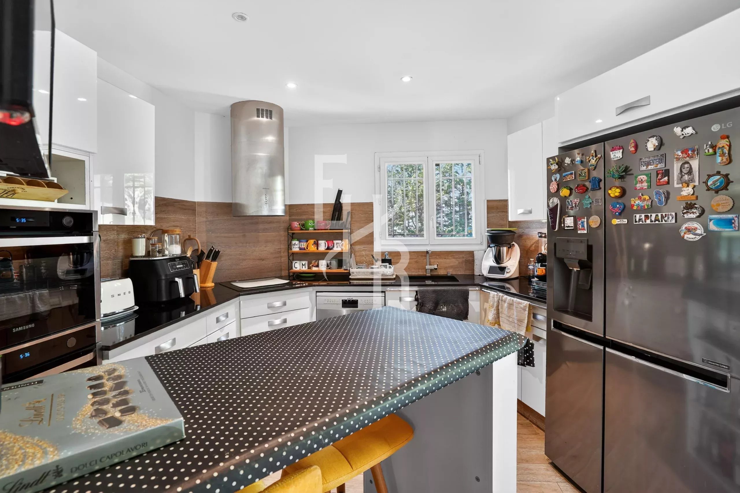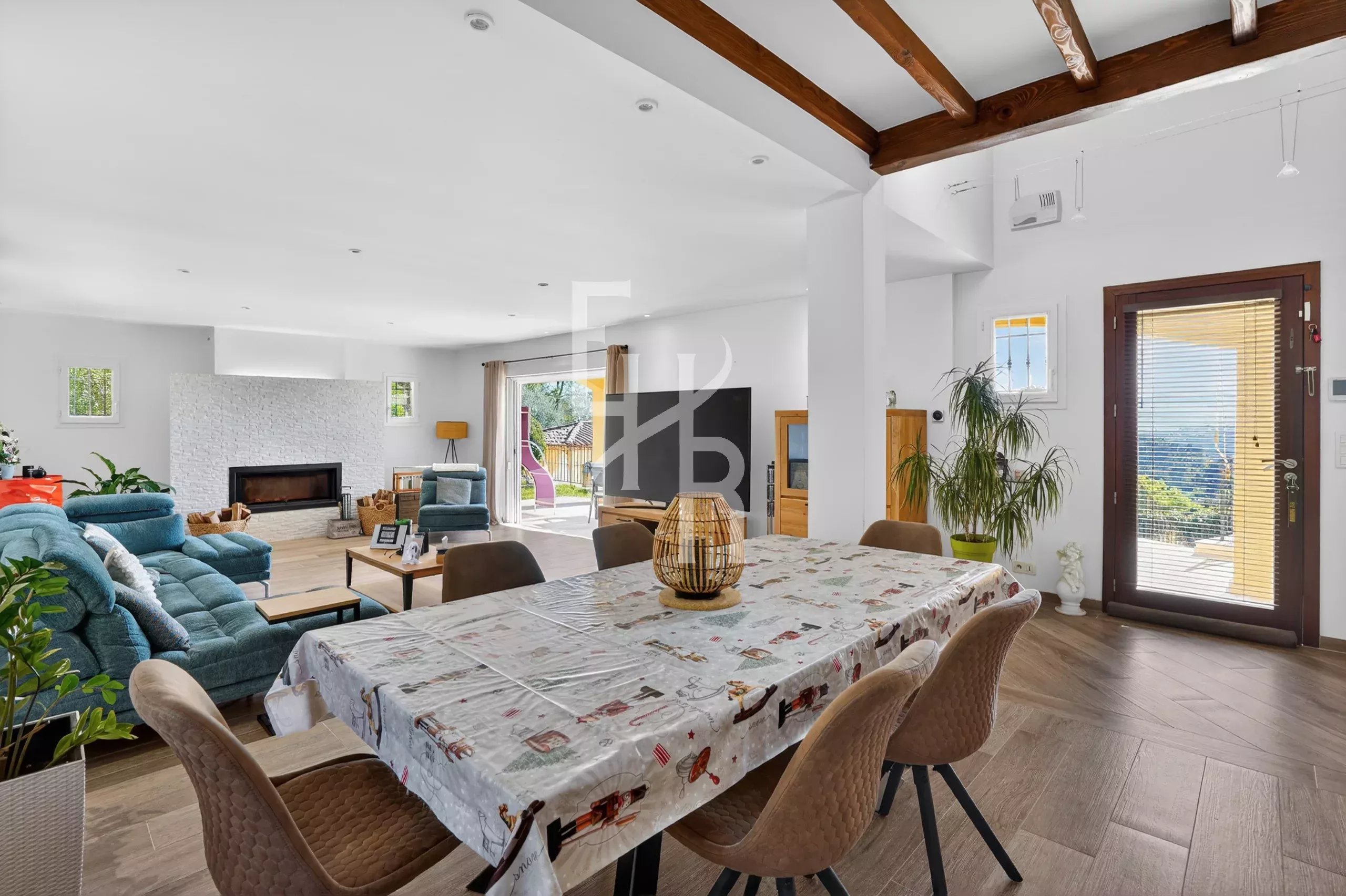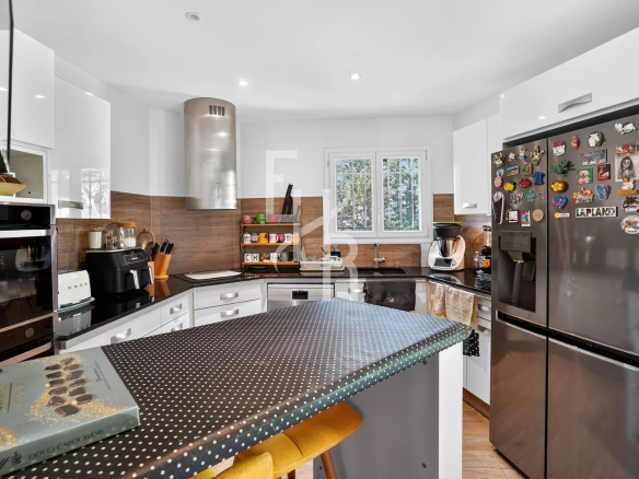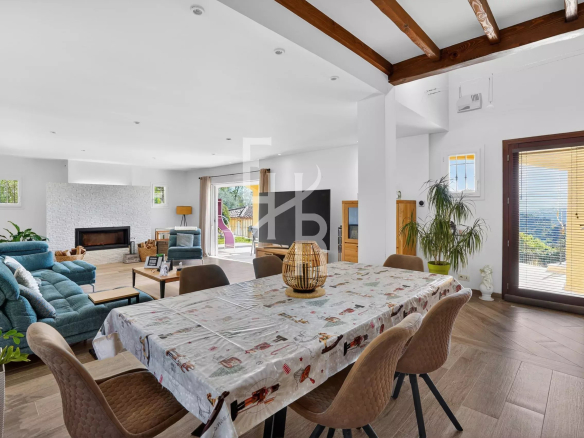 Édifiée sur trois niveaux et parfaitement entretenue, la maison offre de beaux espaces de vie. Le séjour avec cheminée, spacieux et lumineux, s’ouvre sur de larges terrasses permettant de profiter pleinement de l’extérieur.