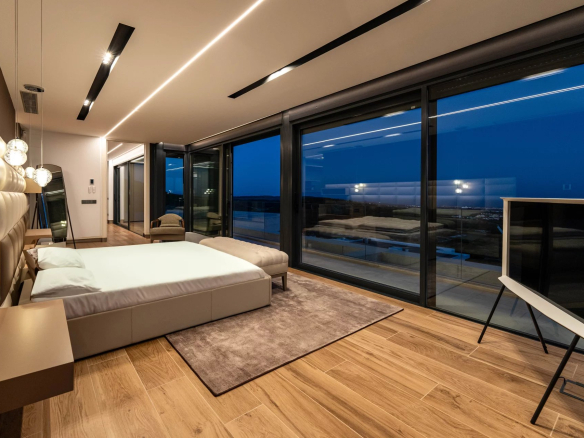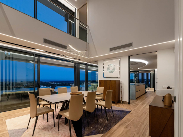 avec de nombreuses fonctionnalités luxueuses. Grâce aux portes vitrées et aux immenses fenêtres, la lumière naturelle est abondante. Les points forts supplémentaires incluent