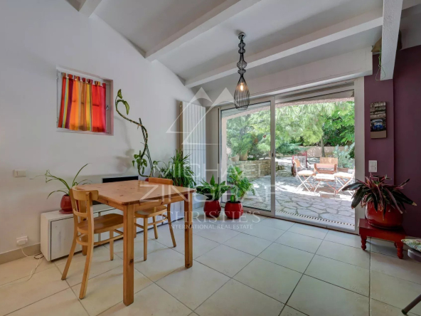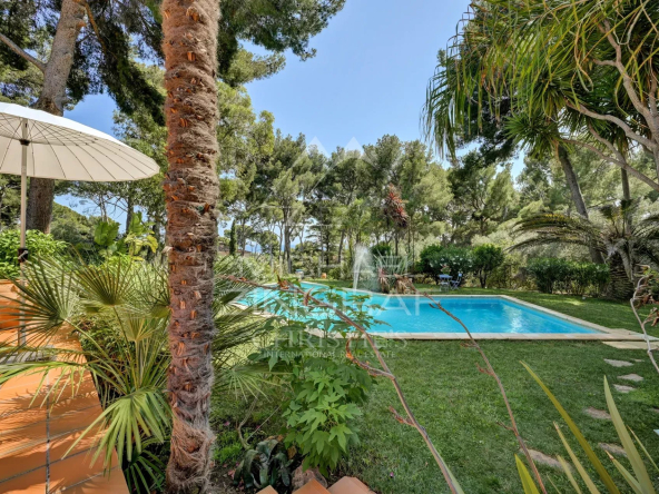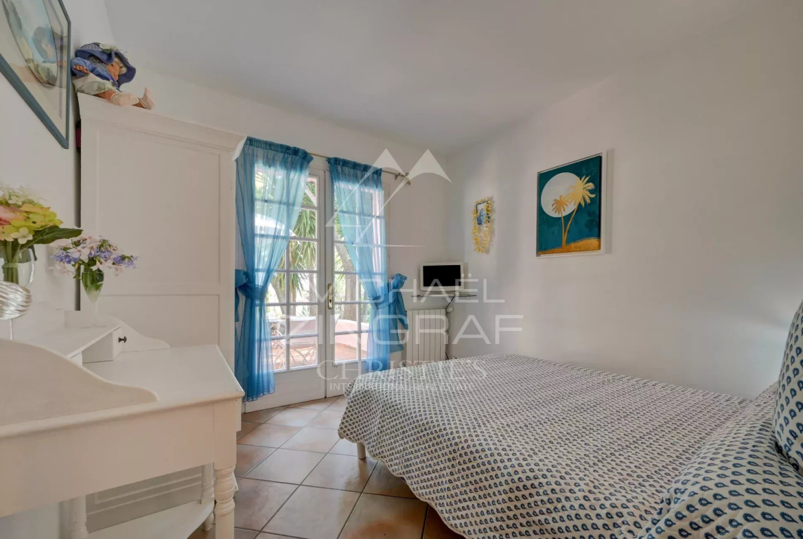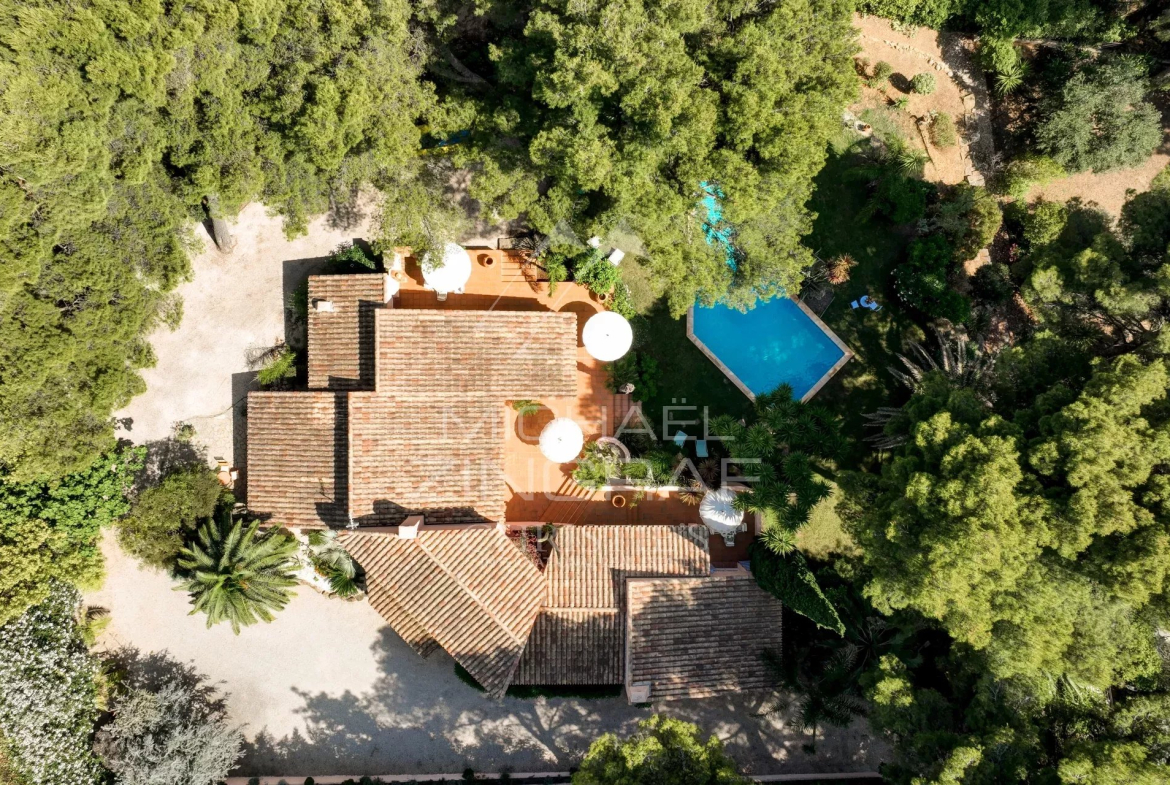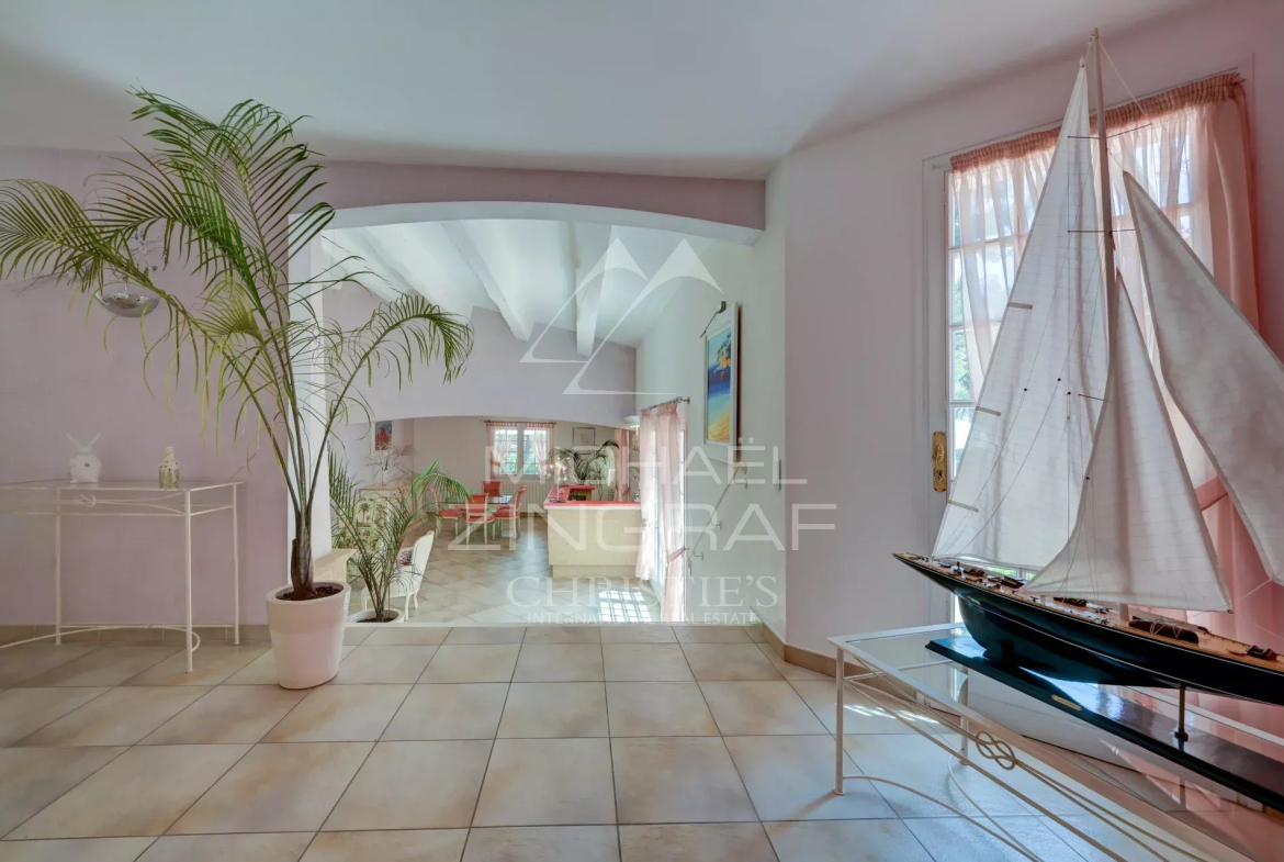 À l’extérieur, la piscine s’intègre harmonieusement au paysage. Le tout compose un décor méditerranéen enchanteur, alliant nature, intimité et élégance, à quelques minutes du port et de toutes commodités.