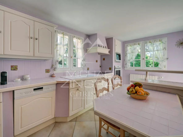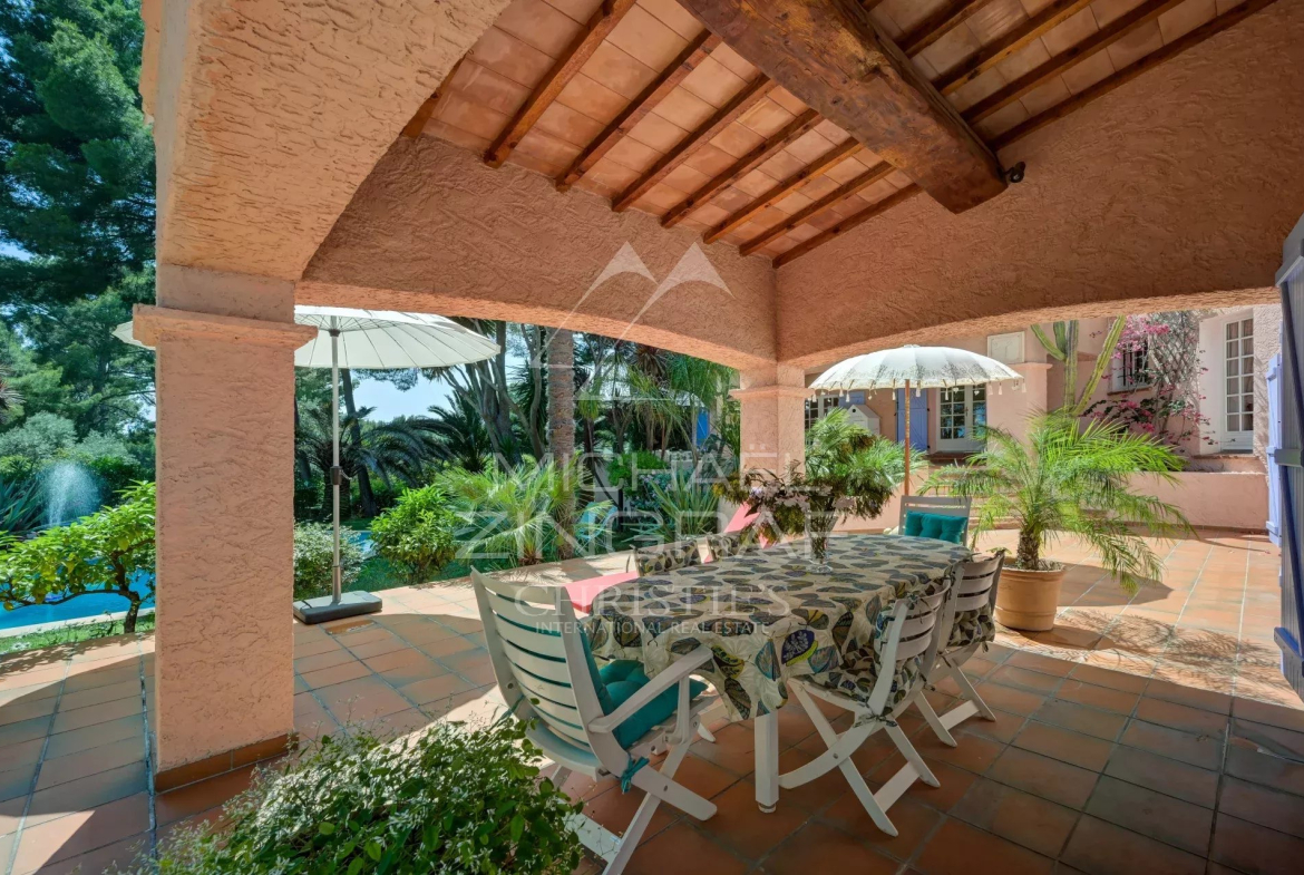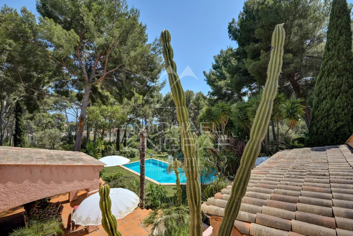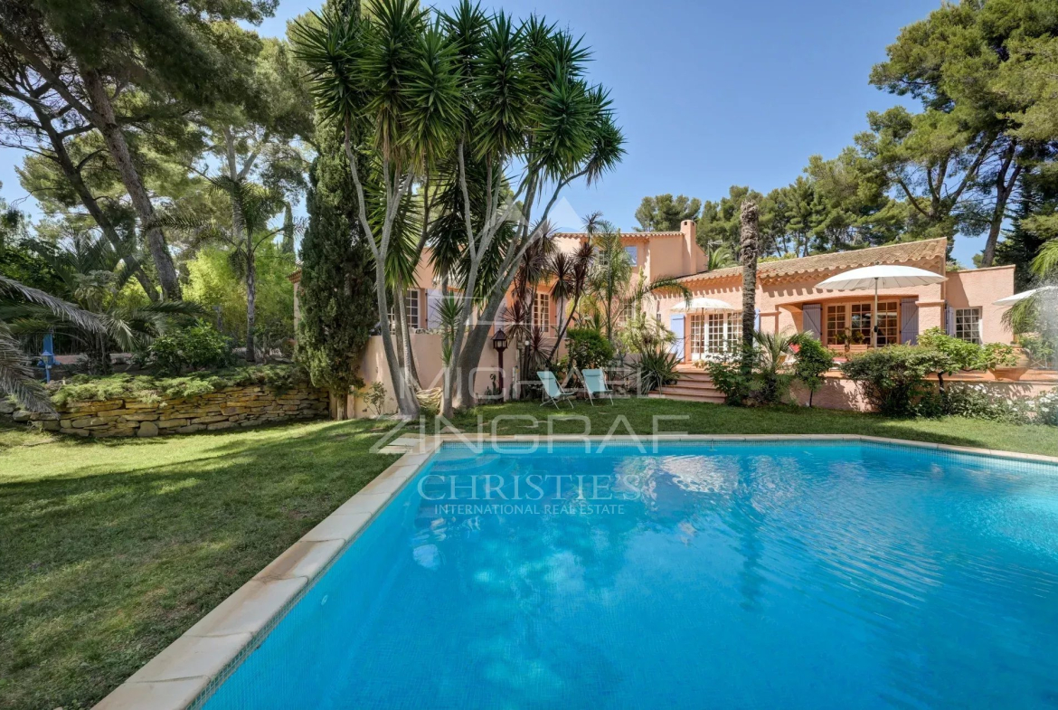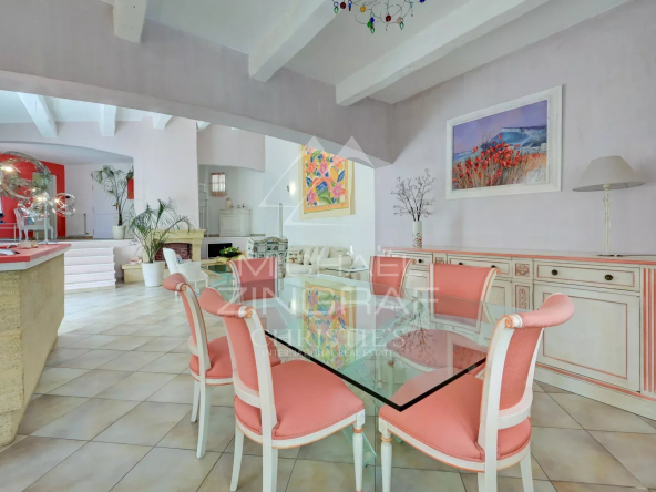 À l’extérieur, la piscine s’intègre harmonieusement au paysage. Le tout compose un décor méditerranéen enchanteur, alliant nature, intimité et élégance, à quelques minutes du port et de toutes commodités.