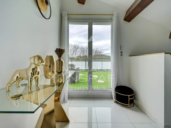 À l’étage, la suite parentale, accessible par ascenseur, est un véritable cocon de sérénité : chambre spacieuse, salon privé, deux dressings sur mesure et une salle d’eau raffinée avec double douche et WC. Un bureau indépendant complète cet espace, tandis que les toits terrasses attenants offrent une vue imprenable sur le jardin.