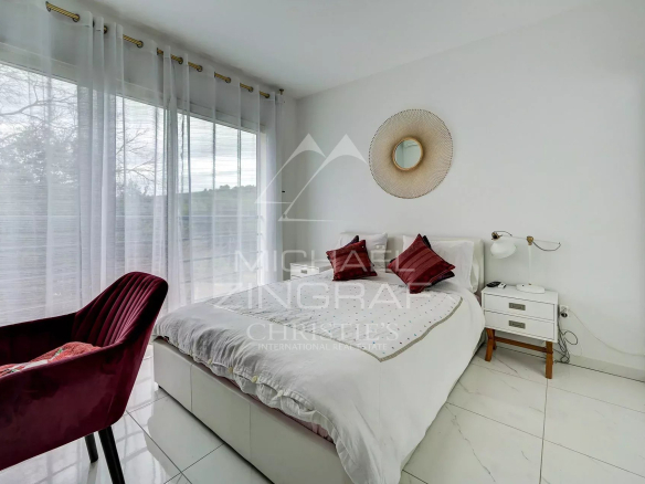 Le rez-de-jardin s’ouvre sur un somptueux espace de vie, où se mêlent salon, espace piano et coin détente. Une cuisine entièrement équipée, aux finitions soignées, assure une transition fluide entre l’intérieur et l’extérieur, pensée pour recevoir en toute convivialité. Dans son prolongement, un second salon offre une vue apaisante sur un bassin intérieur chauffé et s’ouvre sur la terrasse et la piscine extérieure, créant une continuité harmonieuse entre les espaces. Ce niveau comprend également deux chambres, un bureau double, une salle d’eau et un WC indépendant.