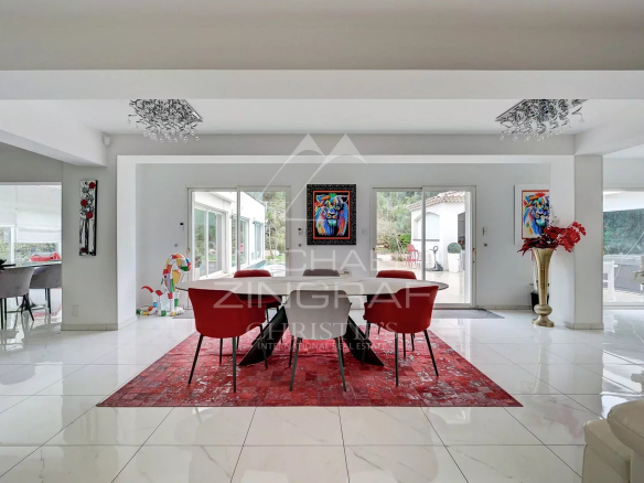 Cette villa d’architecte aux lignes contemporaines offre près de 490 m² de surface habitable, conjuguant élégance, confort et prestations haut de gamme.