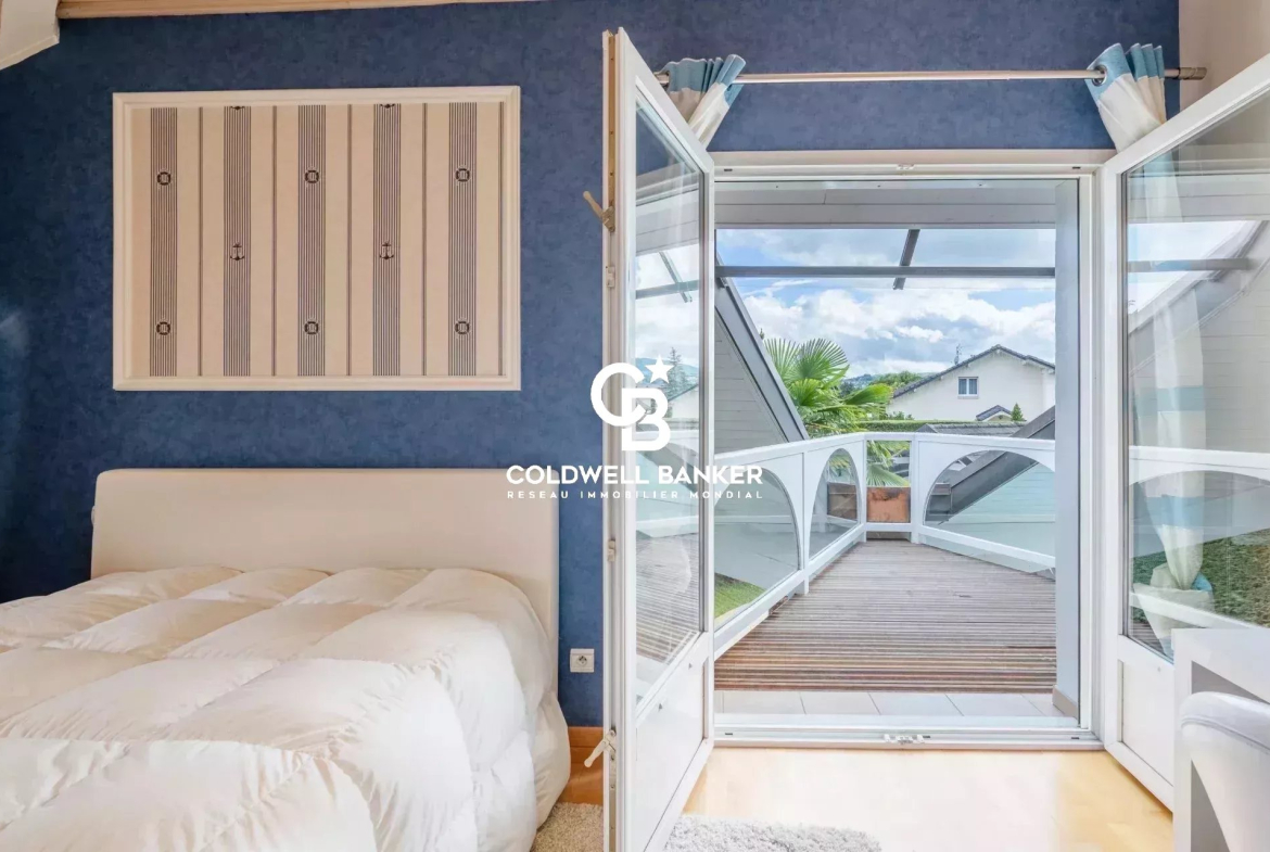 Cette villa bénéficie d’un emplacement stratégique permettant de profiter à la fois de la tranquillité d’un cadre verdoyant et de la proximité immédiate de la ville et des accès routiers pour aller en montagne, à Genève et son lac.