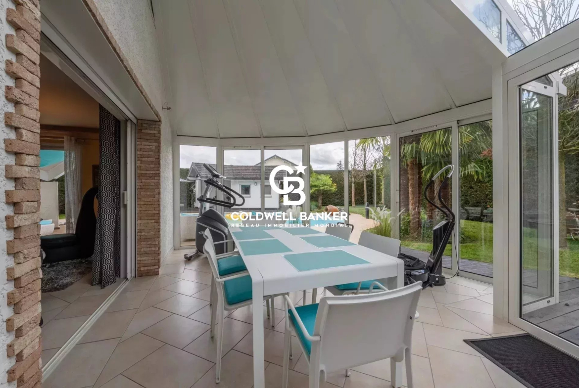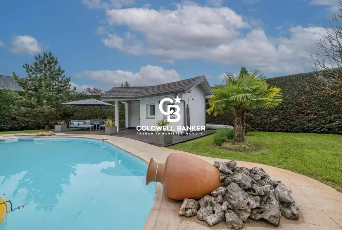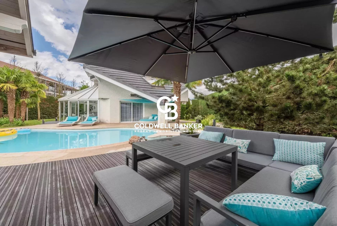Datant de 2000, jolie villa de 285 m² située aux portes de Genève. Sur un terrain de 1200 m² cette maison est parfaite pour une famille qui cherche du confort, de l’espace et de la modernité. Vous pouvez profiter d’une belle piscine et son pool-house et d’un jardin joliment arboré.