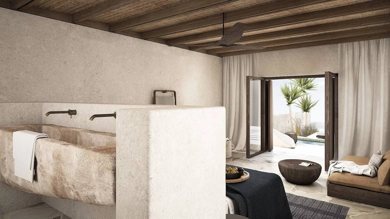 La Villa Thea bénéficie d’un emplacement spectaculaire sur la magnifique île de Folegandros, récemment élue par les lecteurs de Travel + Leisure comme la 2e meilleure île du monde ! La spacieuse villa de 4 chambres a été conçue par un studio d’architecture primé au niveau international et fait partie d’un complexe exclusif situé dans un sanctuaire idyllique en front de mer avec une orientation sud-ouest, entouré de falaises spectaculaires et des eaux tranquilles de la mer Égée. Folegandros est accessible en 50 minutes en ferry depuis Santorin, qui possède un aéroport international avec des liaisons vers toutes les grandes villes européennes. La villa est située à 15 minutes à pied de la plage de Katergo, élue l’une des dix meilleures plages du monde, et à seulement 5 minutes en voiture de la ville principale de Folegandros. Les propriétaires de villas bénéficieront d’un accès exclusif aux installations de luxe qui comprennent un restaurant au bord de la falaise, une salle de sport et un spa de classe mondiale. Les principales caractéristiques de la Villa comprennent : 430 m² d’espaces de vie intérieurs et extérieurs fluides, situés sur un terrain en bord de falaise. Zone de vie et cuisine spacieuse à aire ouverte. Quatre chambres doubles toutes avec vue sur la mer, suites et trois avec bains extérieurs Livré entièrement meublé. Crique à manger en plein air avec barbecue intégré. Une piscine à débordement chauffée et un jacuzzi qui se marient parfaitement avec le bleu de la mer Égée. Un salon en contrebas entourant une cheminée pour ralentir avec un verre de bonne rose locale et célébrer ces légendaires couchers de soleil de Folegandros.