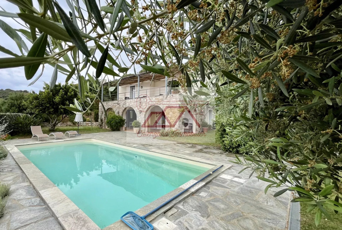 Splendide villa orientée plein ouest, dominant la baie d’Algajola à seulement 1 km de la mer. Nichée sur un terrain clos et arboré de 1024 m², cette propriété offre une piscine de 8×4 m avec système d’électrolyse.