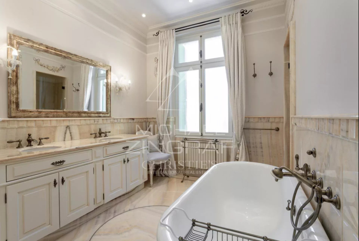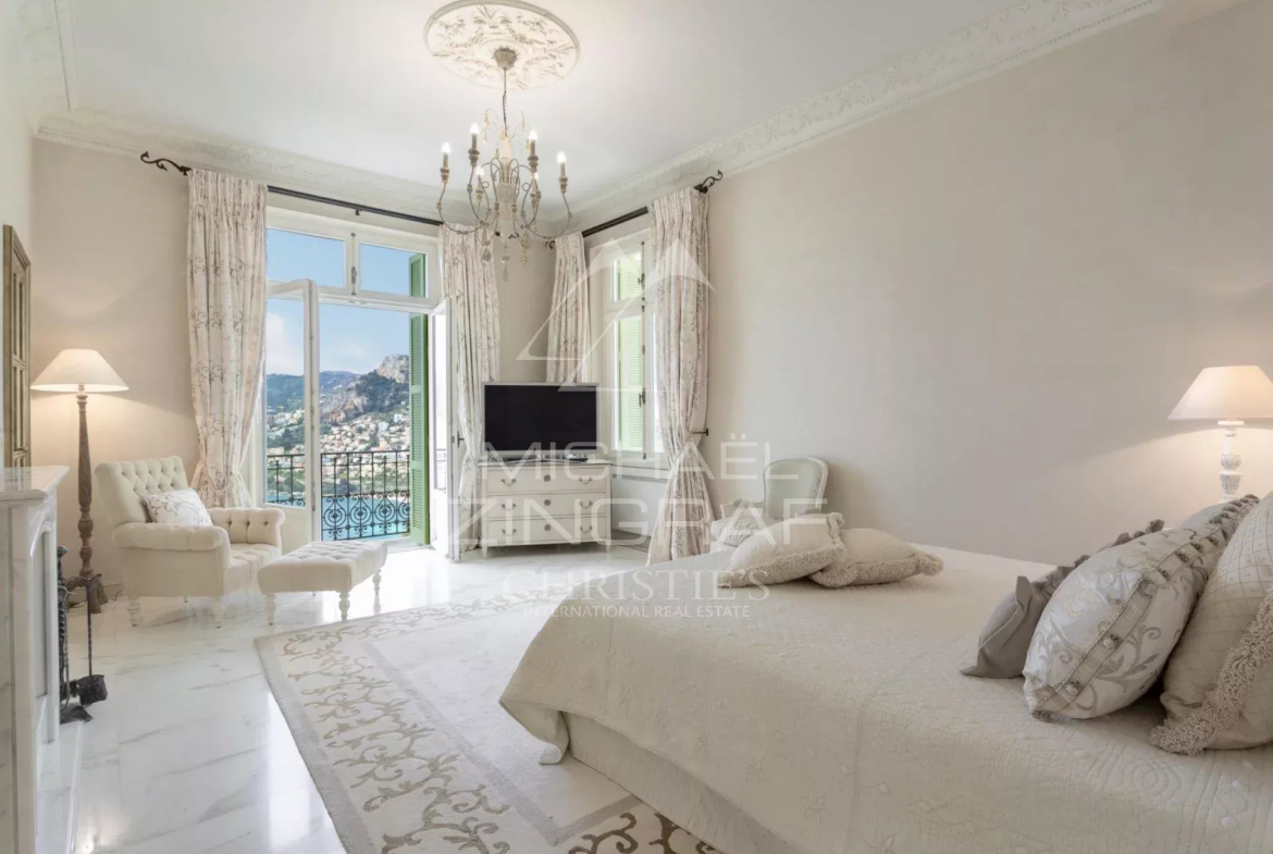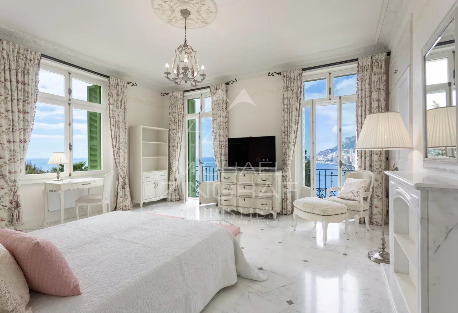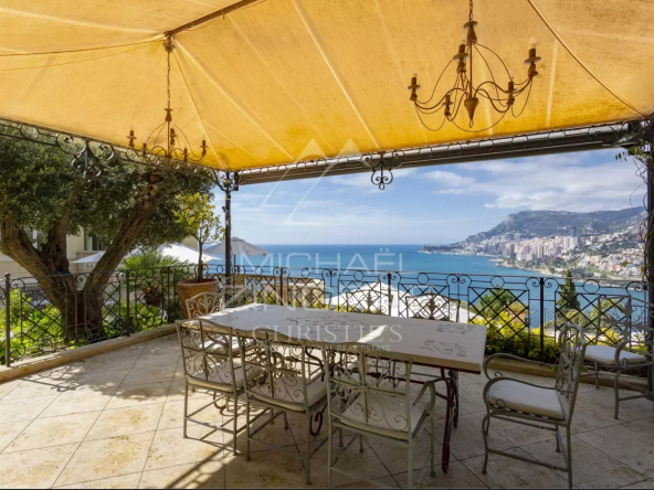 A 10 minutes de la principauté de Monaco, dans un secteur résidentiel et calme, luxueuse villa Belle Epoque au coeur d’un parc plat complanté d’environ 2.500 m² avec piscine. Magnifique vue mer panoramique.
