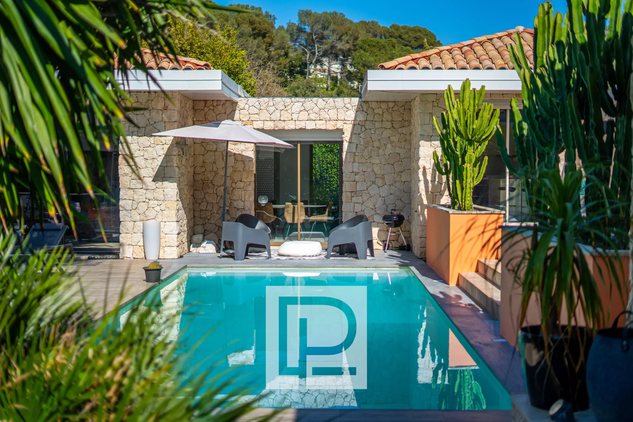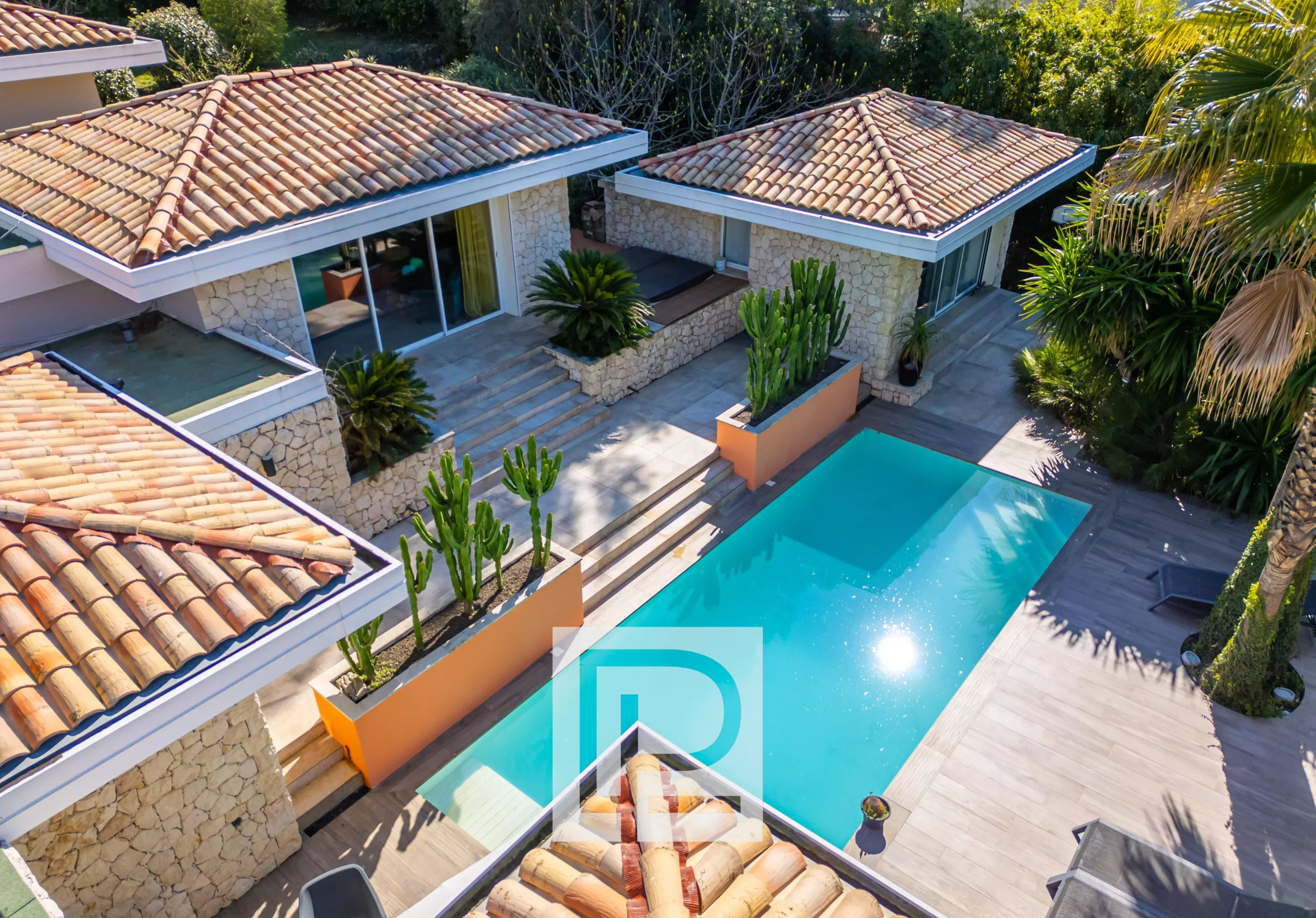 Proche de toutes les commerces, superbe villa californienne de 260m² environ + sous-sol, sur un terrain de 2670m², avec piscine chauffée au sel. Grande réception, salle à manger, cuisine équipée + cellier/buanderie, une grande chambre de maître avec dressing et salle de bains, une chambre avec bains, 2 autres chambres qui se partagent une salle de bains. Une dépendance dans laquelle il y a hammam et salle de sport (pouvant très facilement être une 5ème chambre).