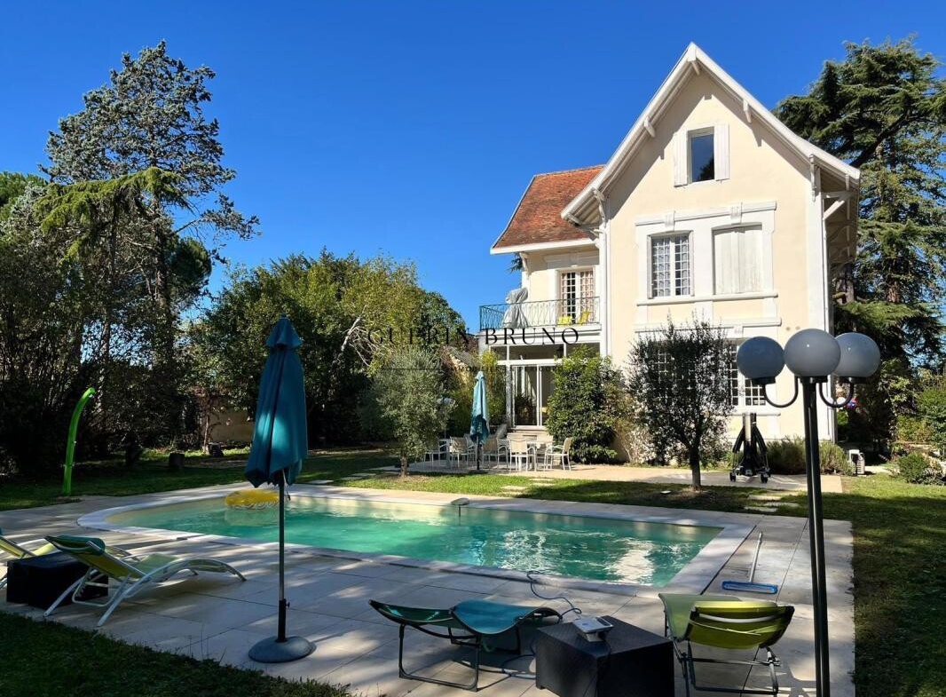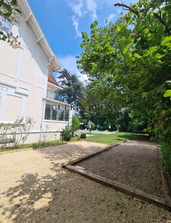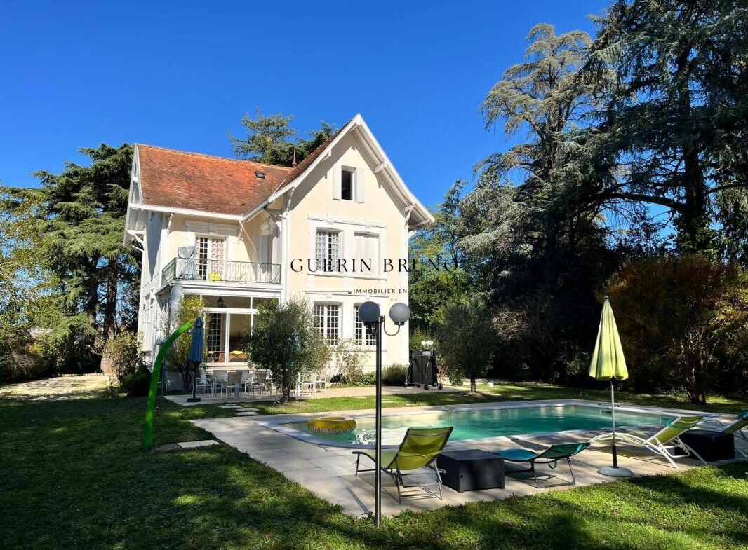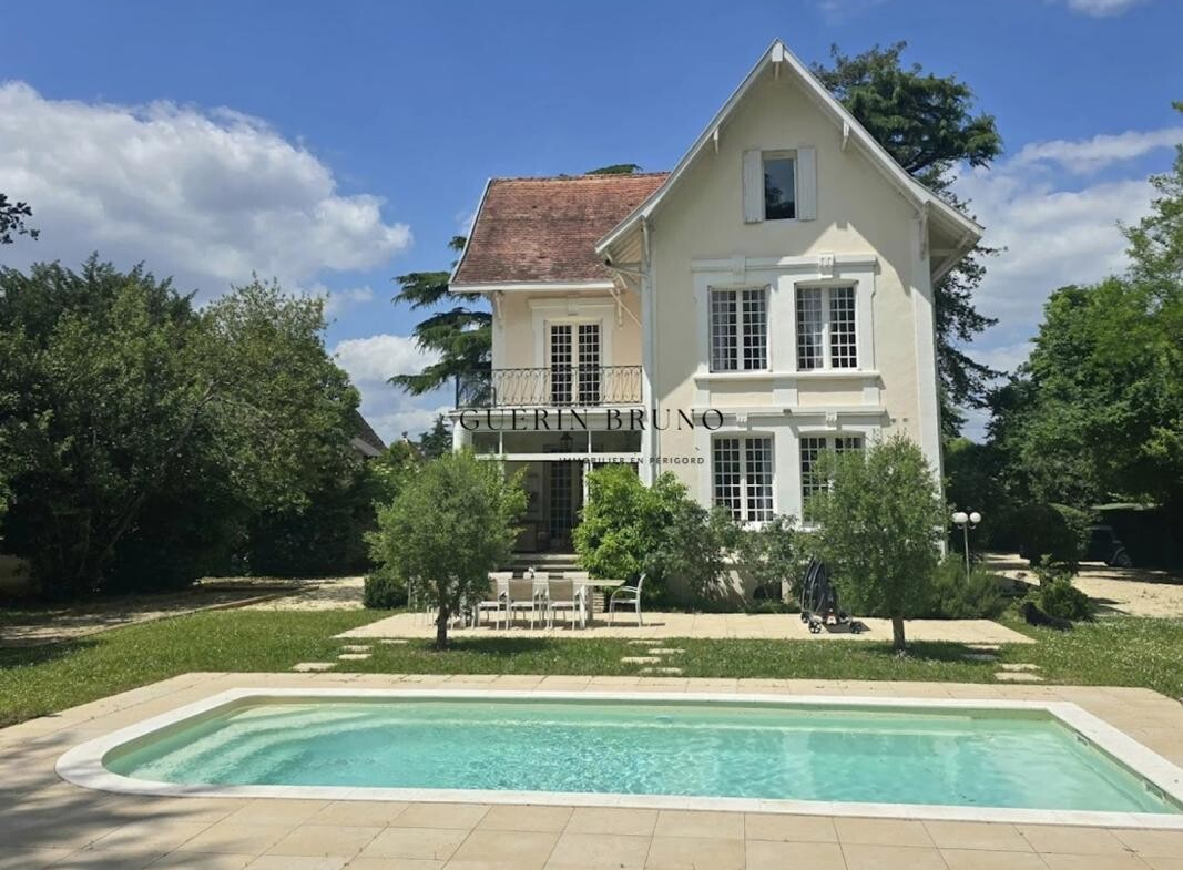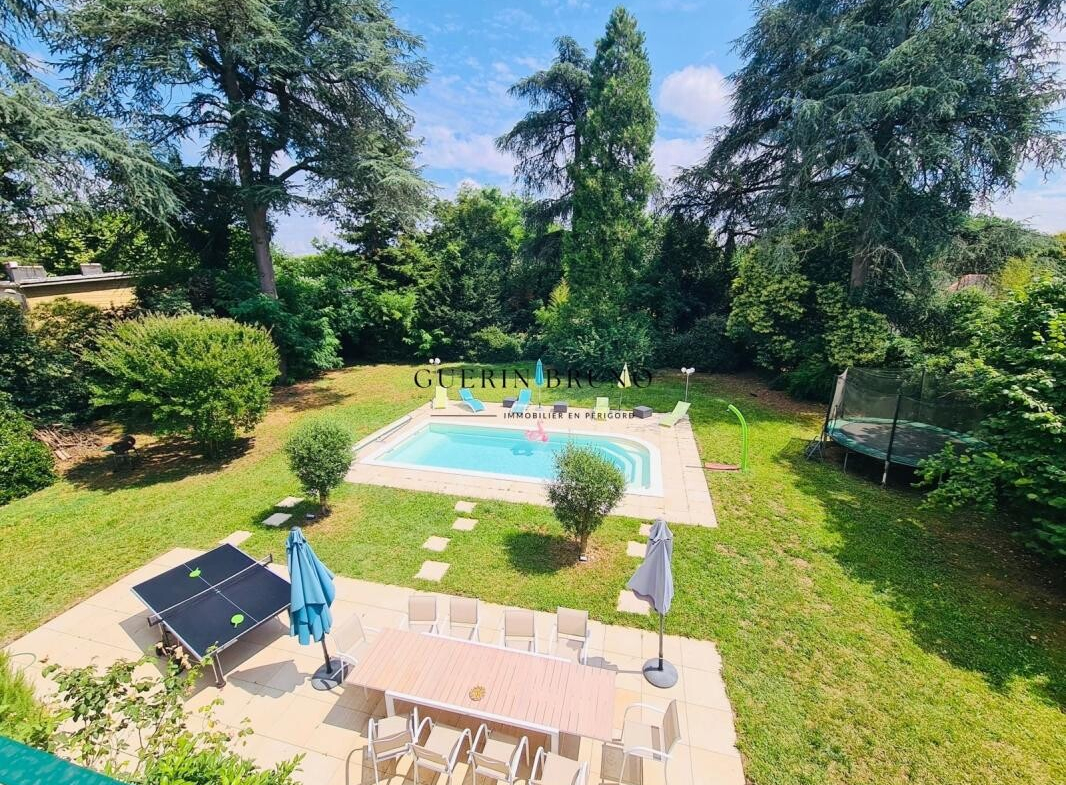 À Bergerac, au c?ur du Périgord Pourpre, cette élégante maison bourgeoise des années 30 offre environ 250 m² habitables au sein d’un magnifique parc clos et arboré de 2 921 m², agrémenté de cèdres centenaires et d’une piscine au sel 9×4 chauffée par pompe à chaleur. La situation est idéale : commerces, écoles et services sont accessibles à pied ou à vélo, dans un environnement calme et recherché. Le portail électrique renforce le confort et la sécurité des lieux.