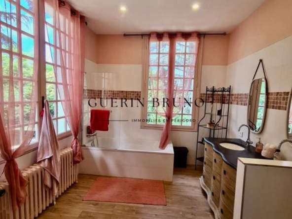 Cette demeure de caractère, aux 10 pièces dont 6 chambres et 4 salles de bains, constitue un bien rare sur Bergerac, idéal pour une famille ou pour un projet de résidence secondaire en Dordogne.