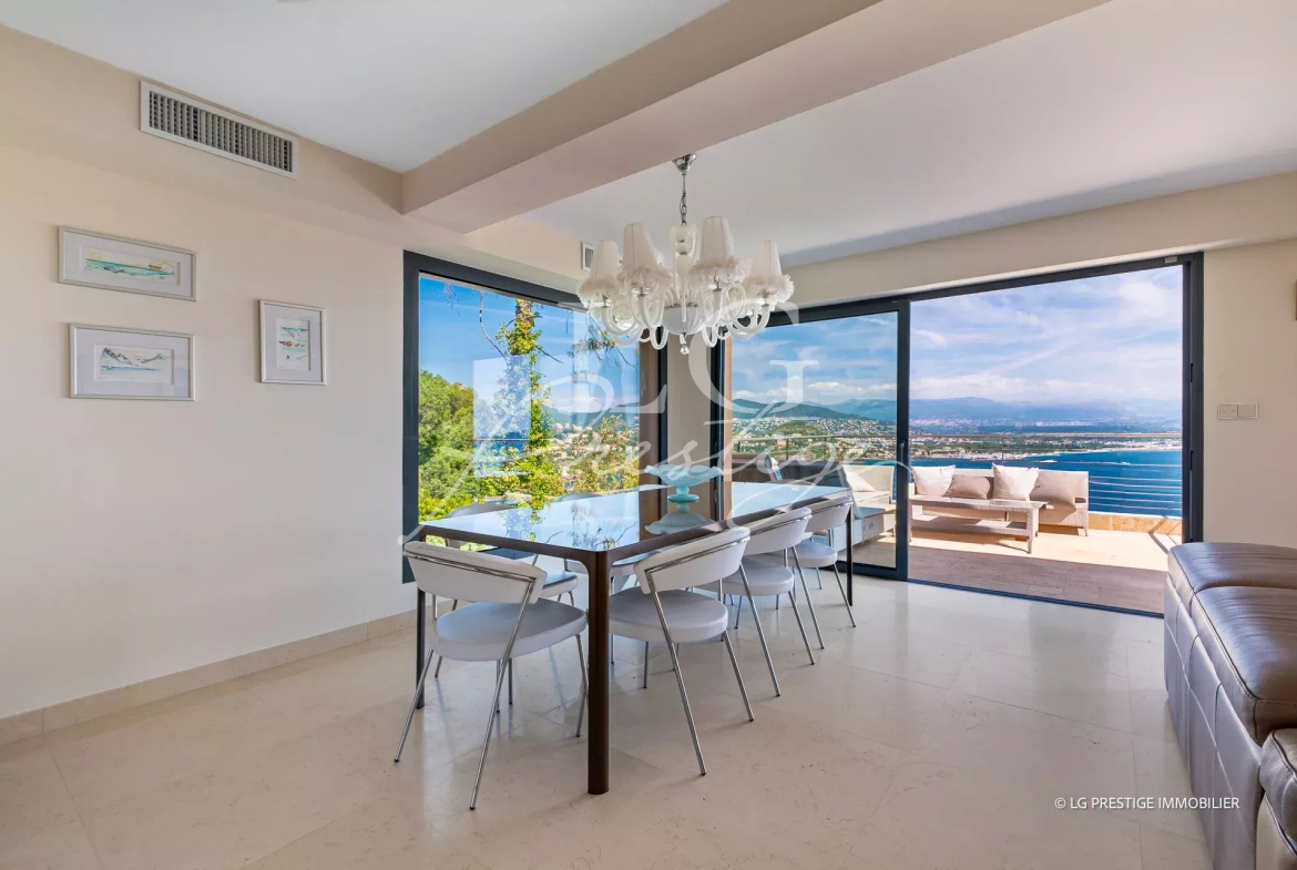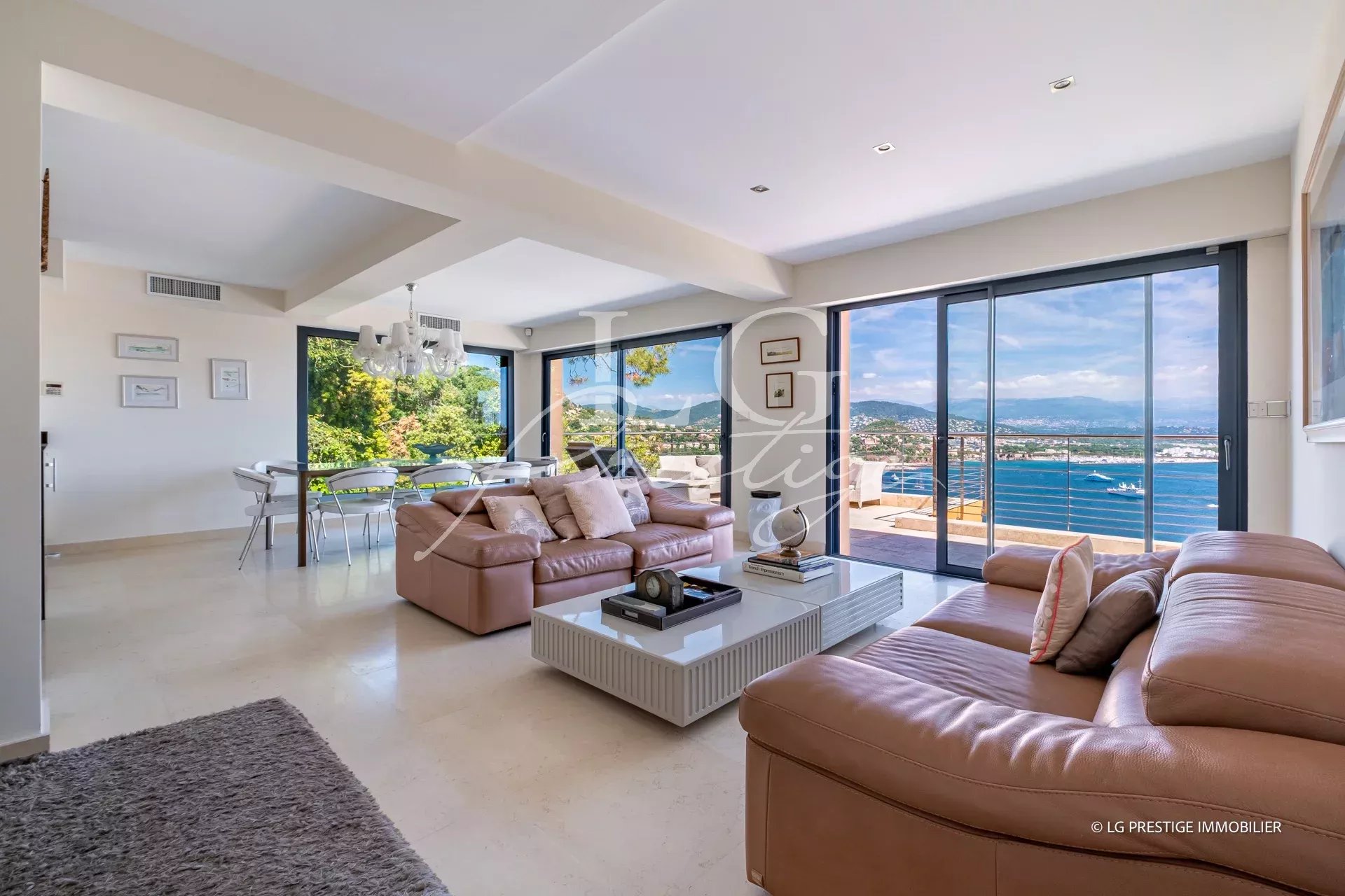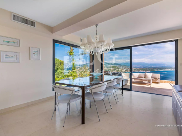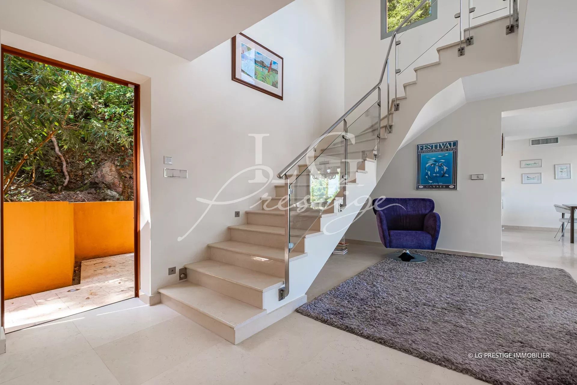 LG Prestige Immobilier de Théoule-sur-Mer vous présente une magnifique villa contemporaine, située à quelques pas des plages et des commerces. Cette villa moderne offre une vue panoramique exceptionnelle sur la baie de Cannes, les îles de Lérins et le Cap d’Antibes.