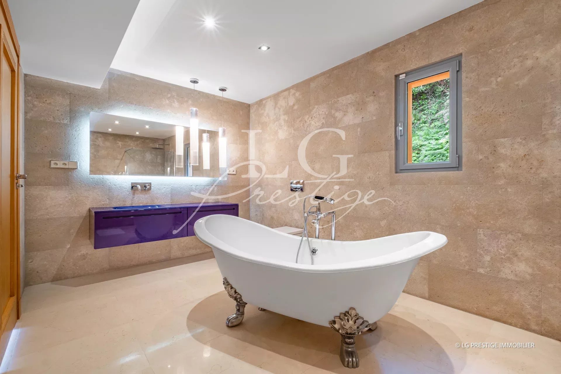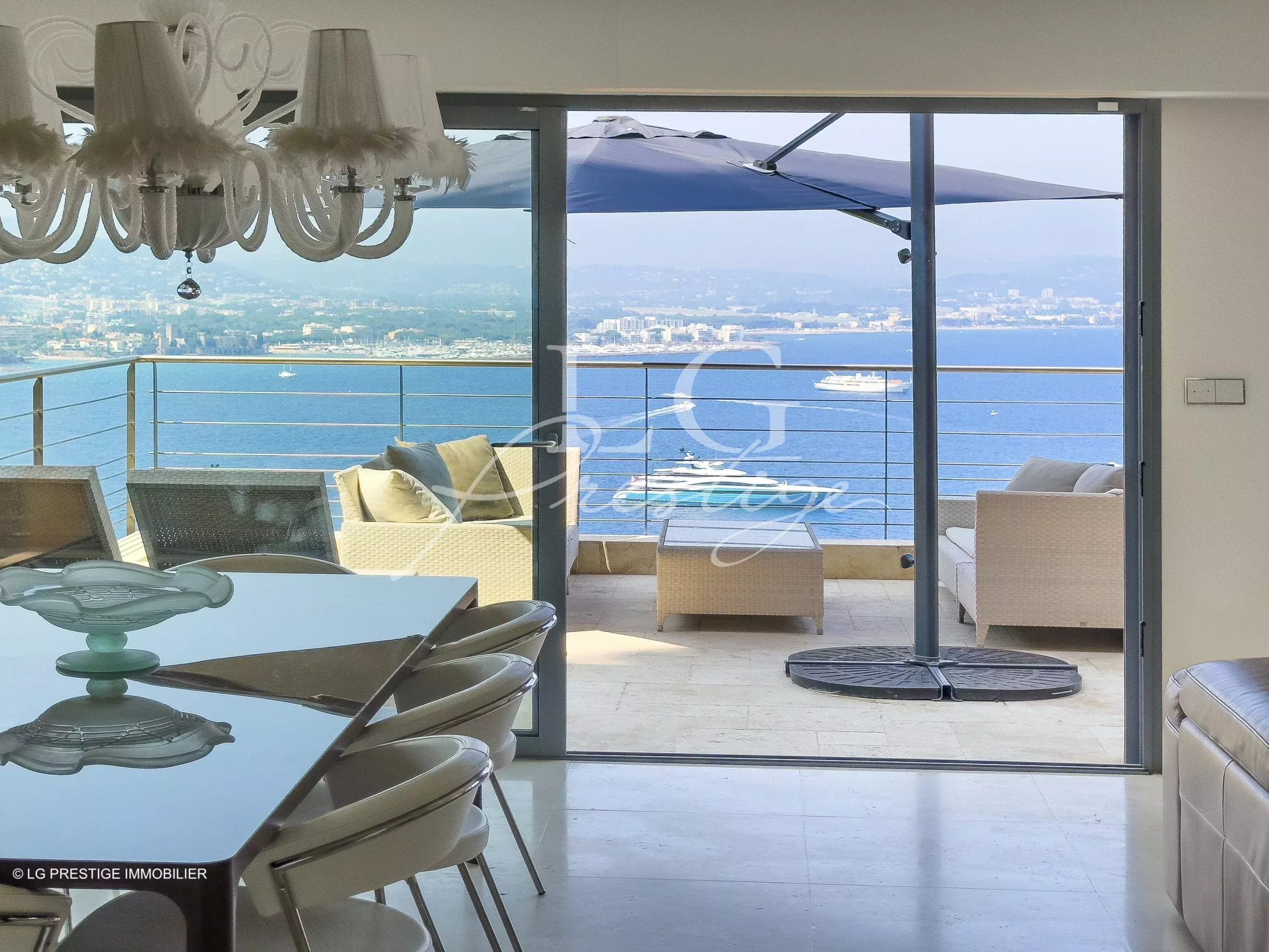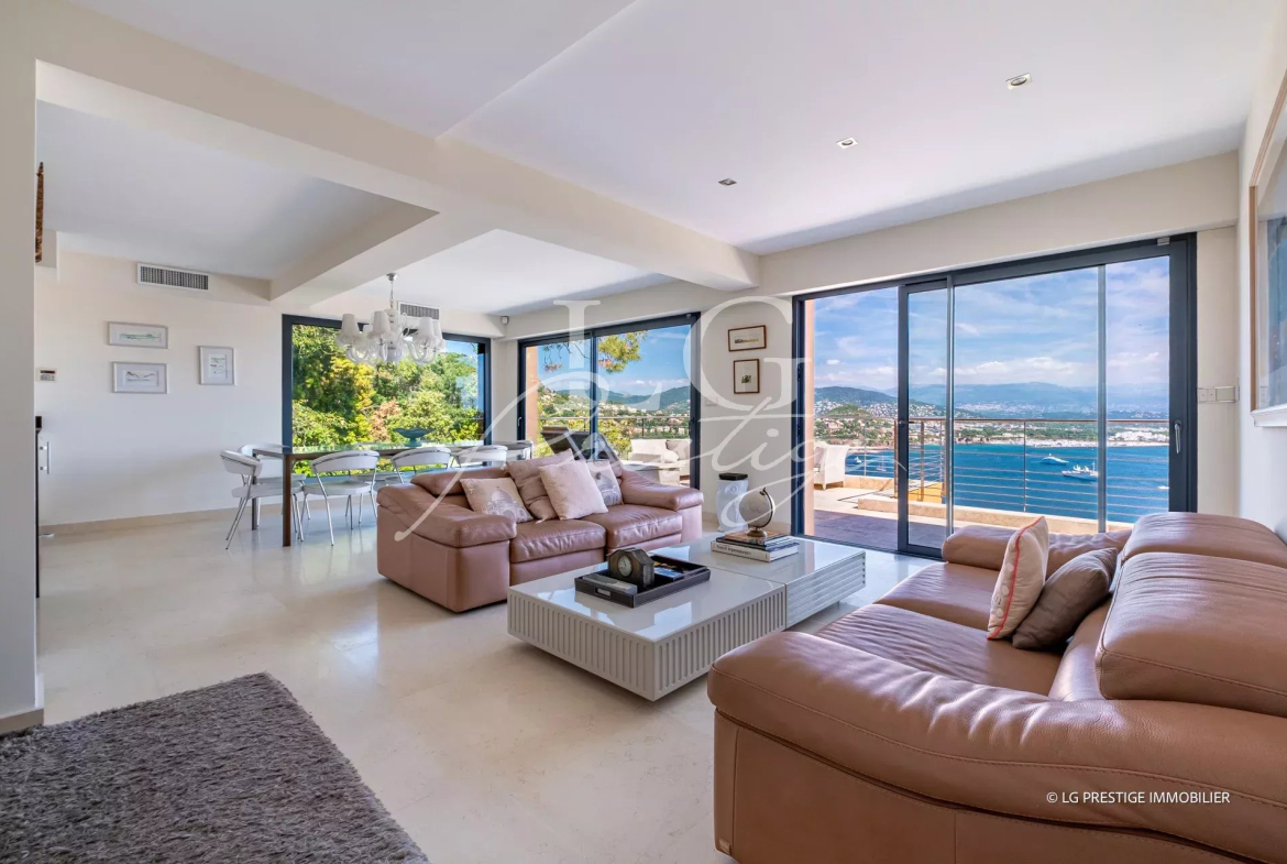 LG Prestige Immobilier de Théoule-sur-Mer vous présente une magnifique villa contemporaine, située à quelques pas des plages et des commerces. Cette villa moderne offre une vue panoramique exceptionnelle sur la baie de Cannes, les îles de Lérins et le Cap d’Antibes.
