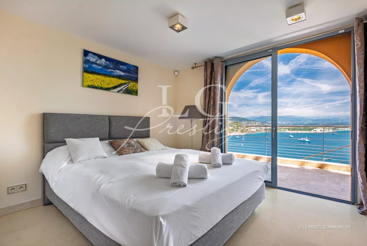 Elle comprend un vaste séjour offrant une vue mer panoramique, une salle à manger, une cuisine équipée et deux chambres, dont une en suite avec vue mer, ainsi qu’une seconde salle de douche avec WC. À l’étage, un espace détente avec une terrasse et une grande suite avec dressing.