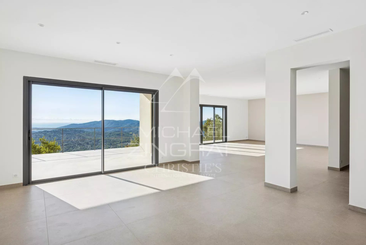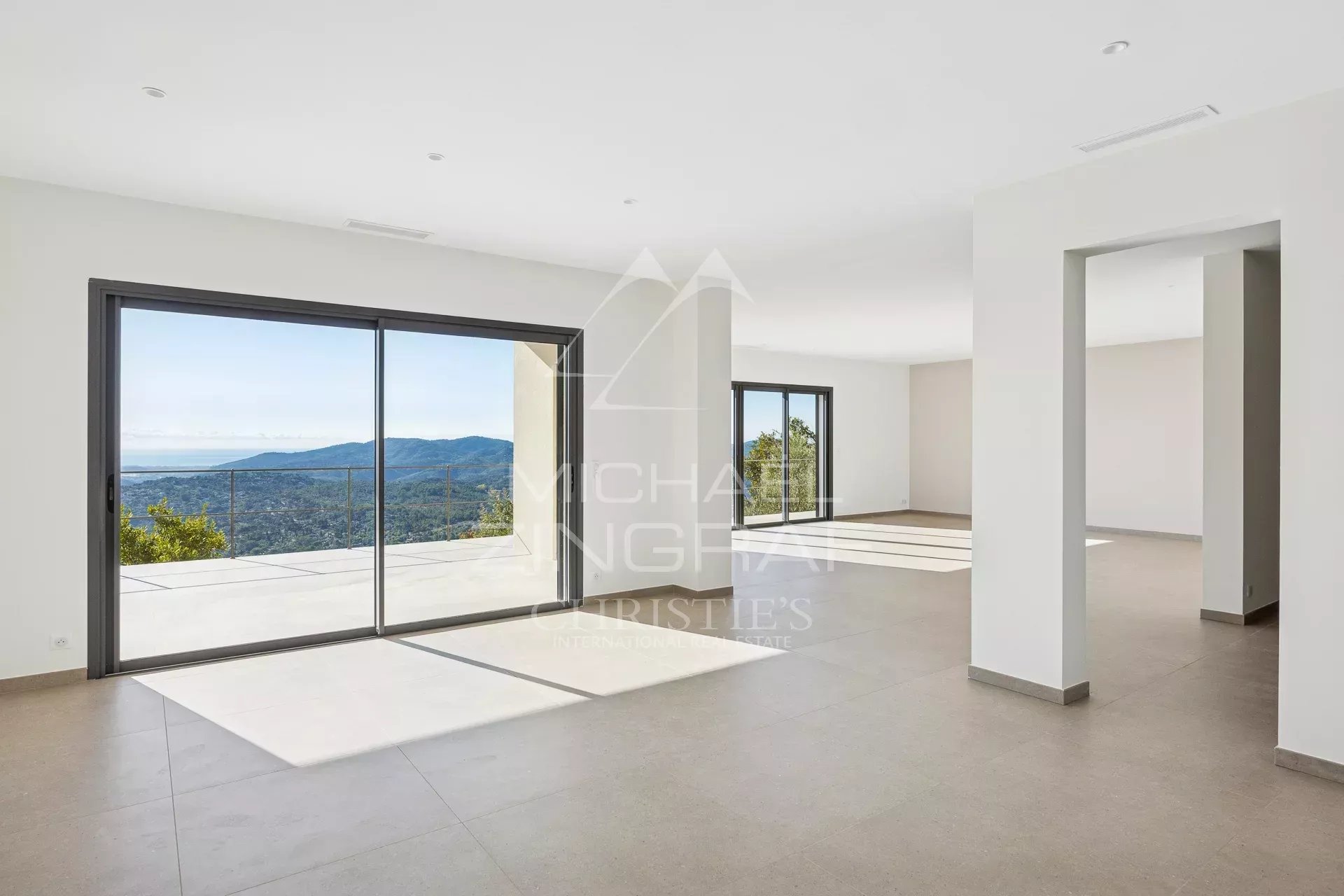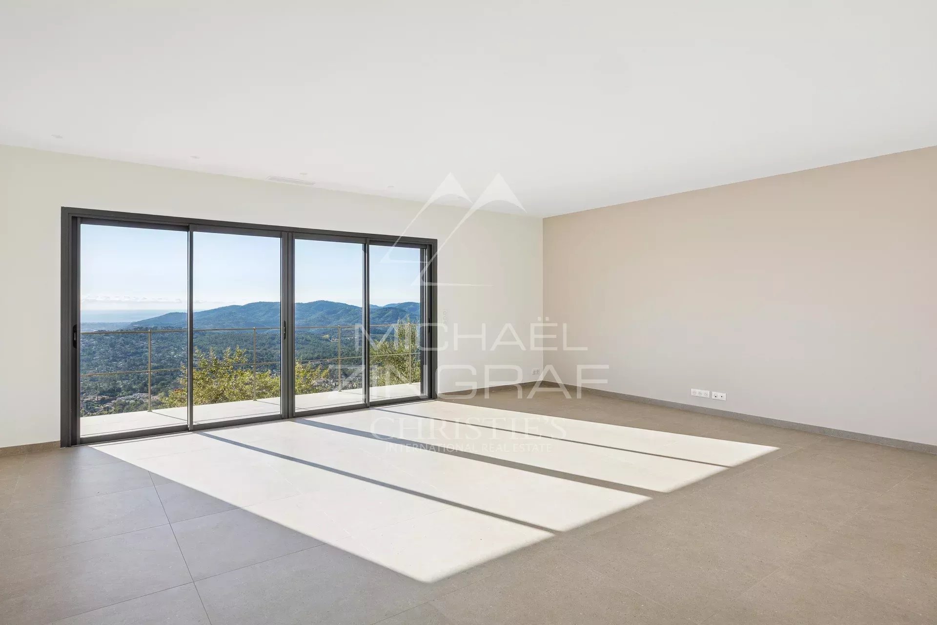 Découvrez cette villa contemporaine de 280m² dotée d’une vue panoramique exceptionnelle. Elle se compose de deux niveaux de vie au sein desquels vous bénéficierez de 96 m² de receptions , 4 suites dotées de salles de bains et dressing. Un garage avec ascenceur complète cet intérieur tandis qu’à l’extérieur vous profiterez des terrasses, restanques ainsi que de la piscine avec vue mer. La maison date de 2023 et n’attend plus que son habillage.