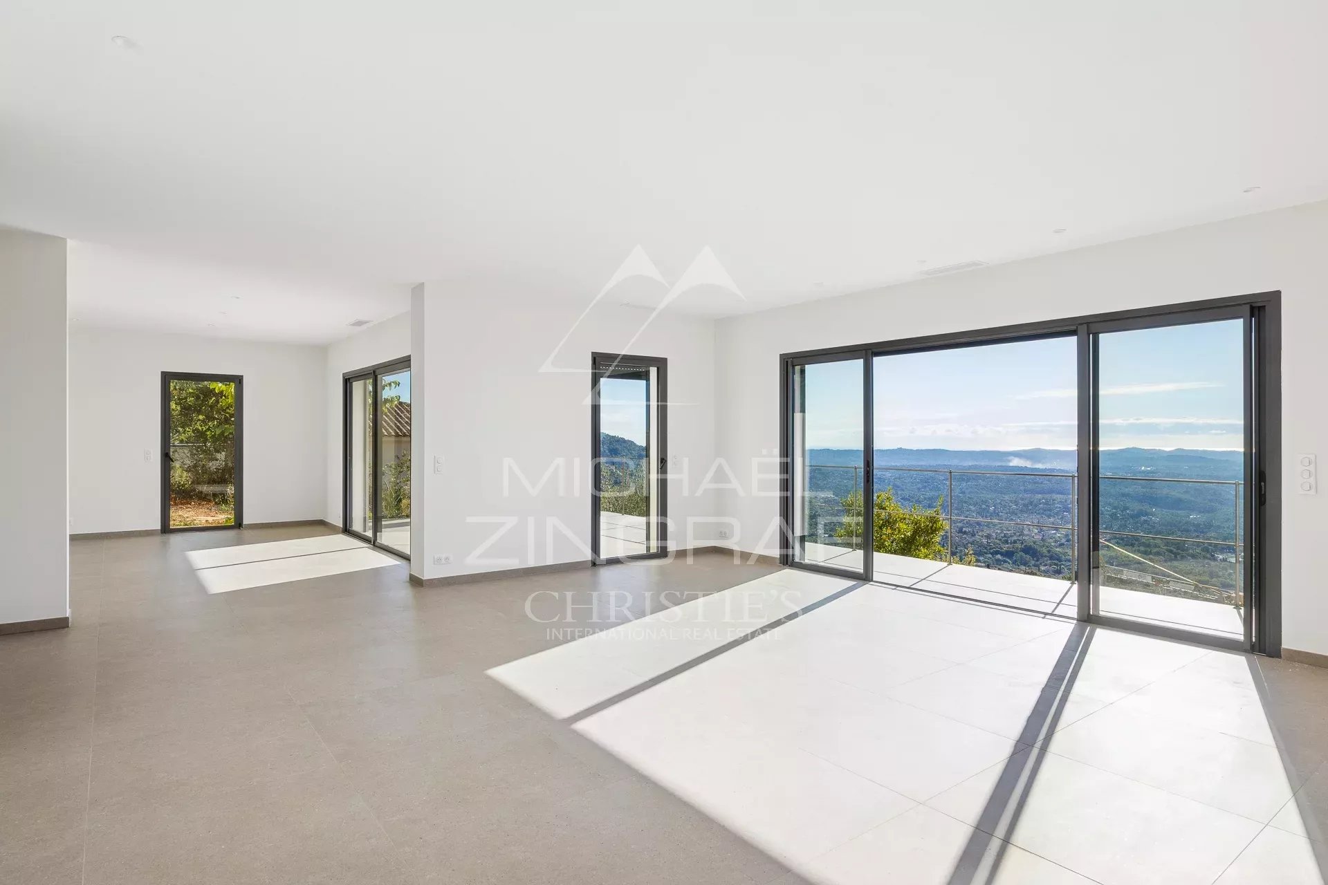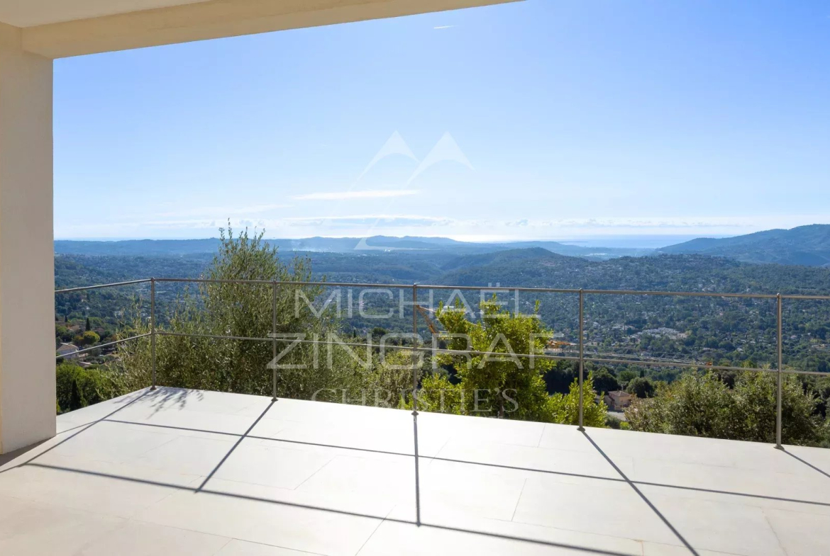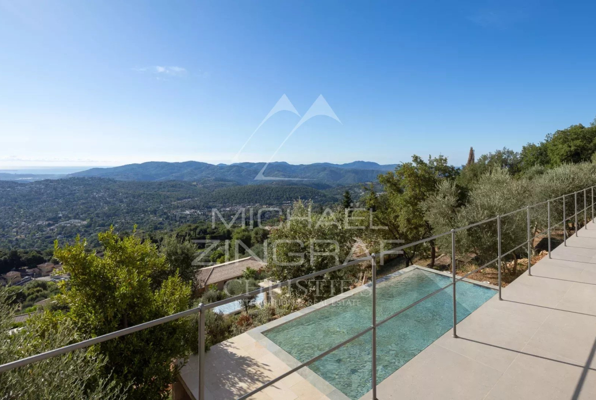 Découvrez cette villa contemporaine de 280m² dotée d’une vue panoramique exceptionnelle. Elle se compose de deux niveaux de vie au sein desquels vous bénéficierez de 96 m² de receptions , 4 suites dotées de salles de bains et dressing. Un garage avec ascenceur complète cet intérieur tandis qu’à l’extérieur vous profiterez des terrasses, restanques ainsi que de la piscine avec vue mer. La maison date de 2023 et n’attend plus que son habillage.