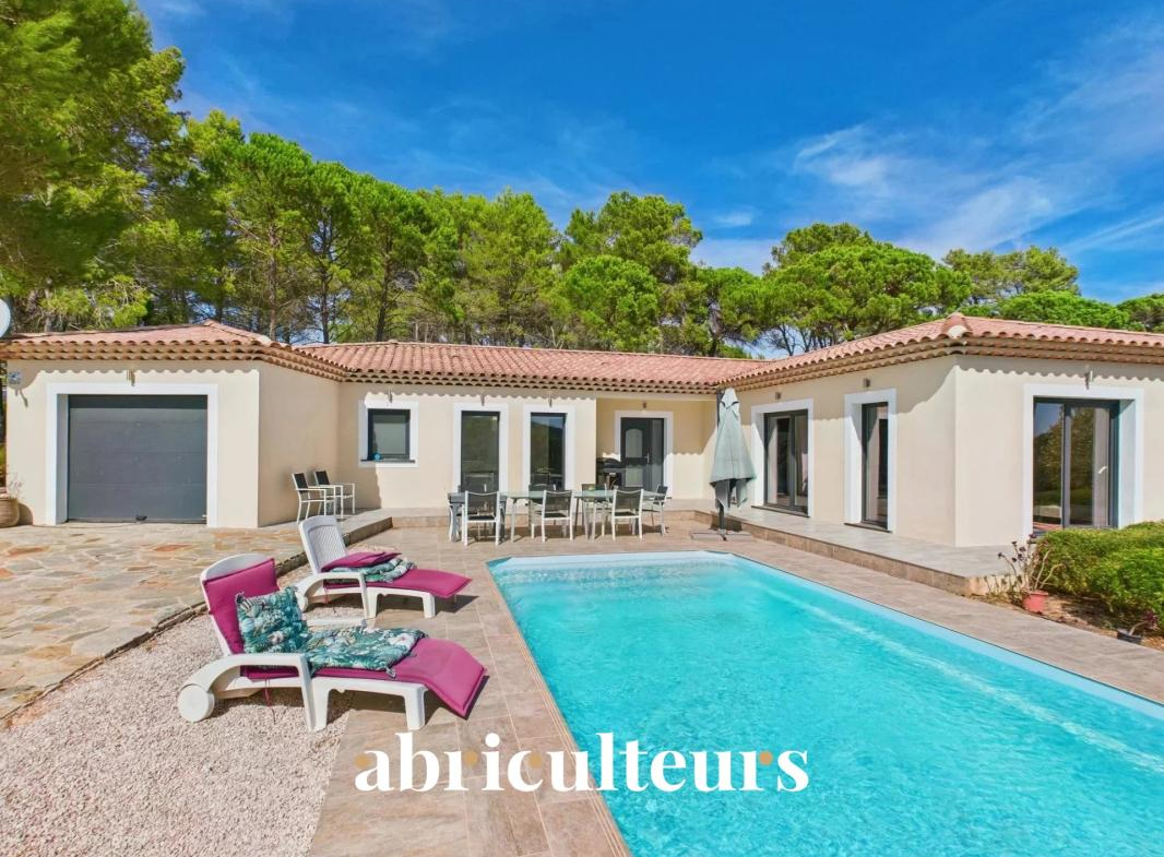 Située dans un Domaine privé, à Bagnols-en-Forêt, cette villa construite en 2020 propose des volumes impressionnants, des lignes épurées et une qualité de construction remarquable.
