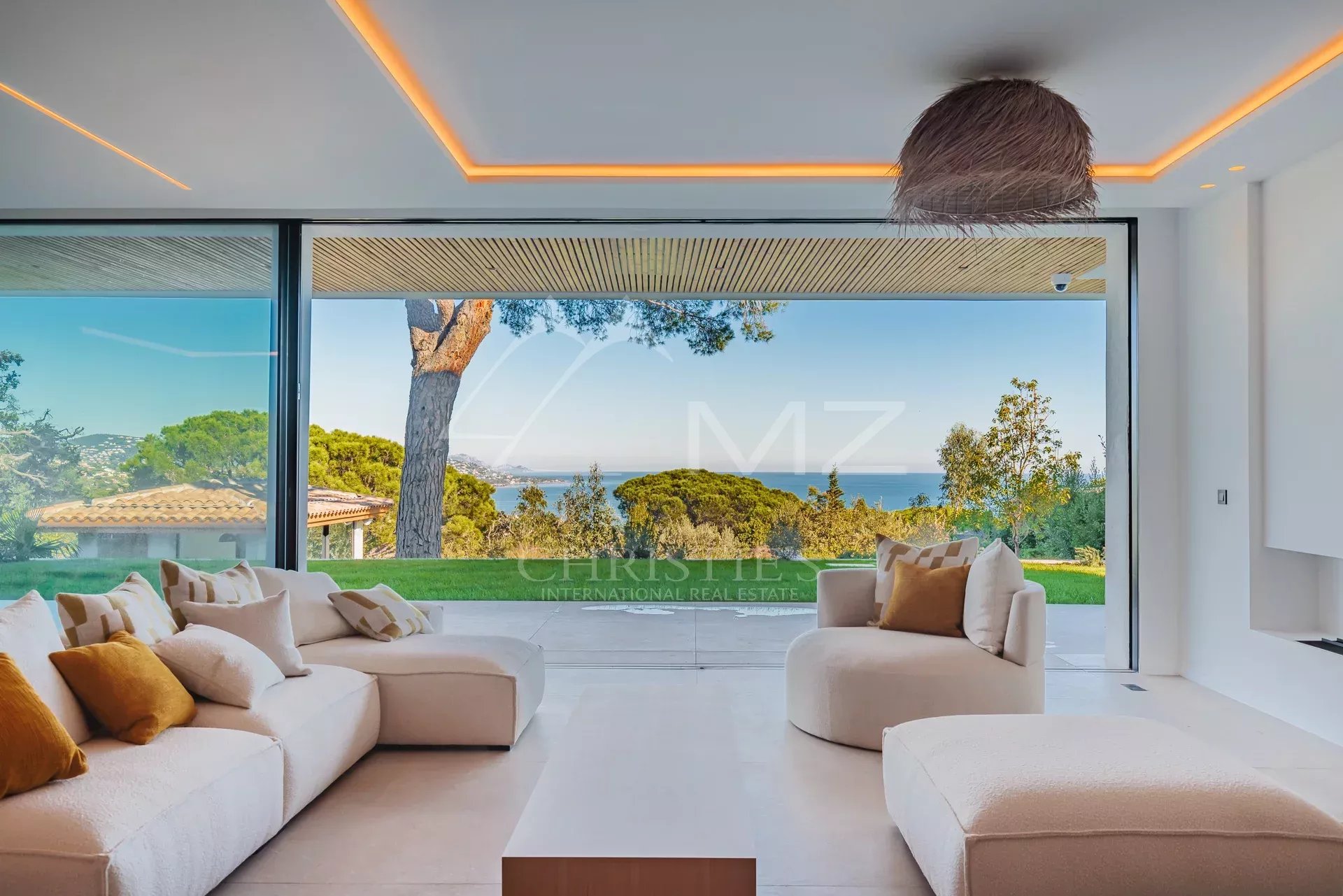 Cette villa neuve de prestige est un bijou immobilier offrant une vue imprenable sur la mer et des prestations exceptionnelles.