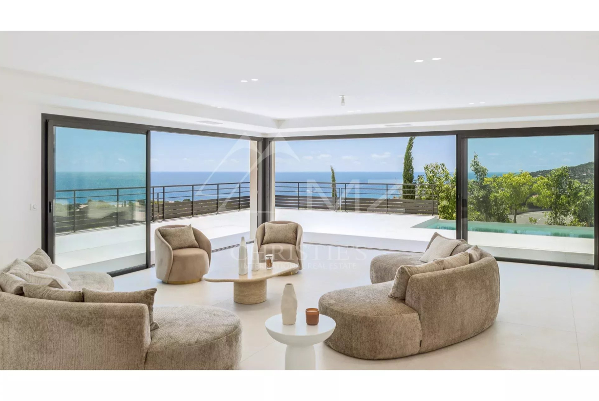 Perchée dans un écrin de verdure, cette somptueuse villa contemporaine récemment achevée vous offre un spectacle quotidien unique : une vue panoramique époustouflante sur la Méditerranée et les roches rouges du massif de l’Estérel. Véritable havre de paix, elle incarne le luxe, le confort et la modernité dans un cadre absolument idyllique.