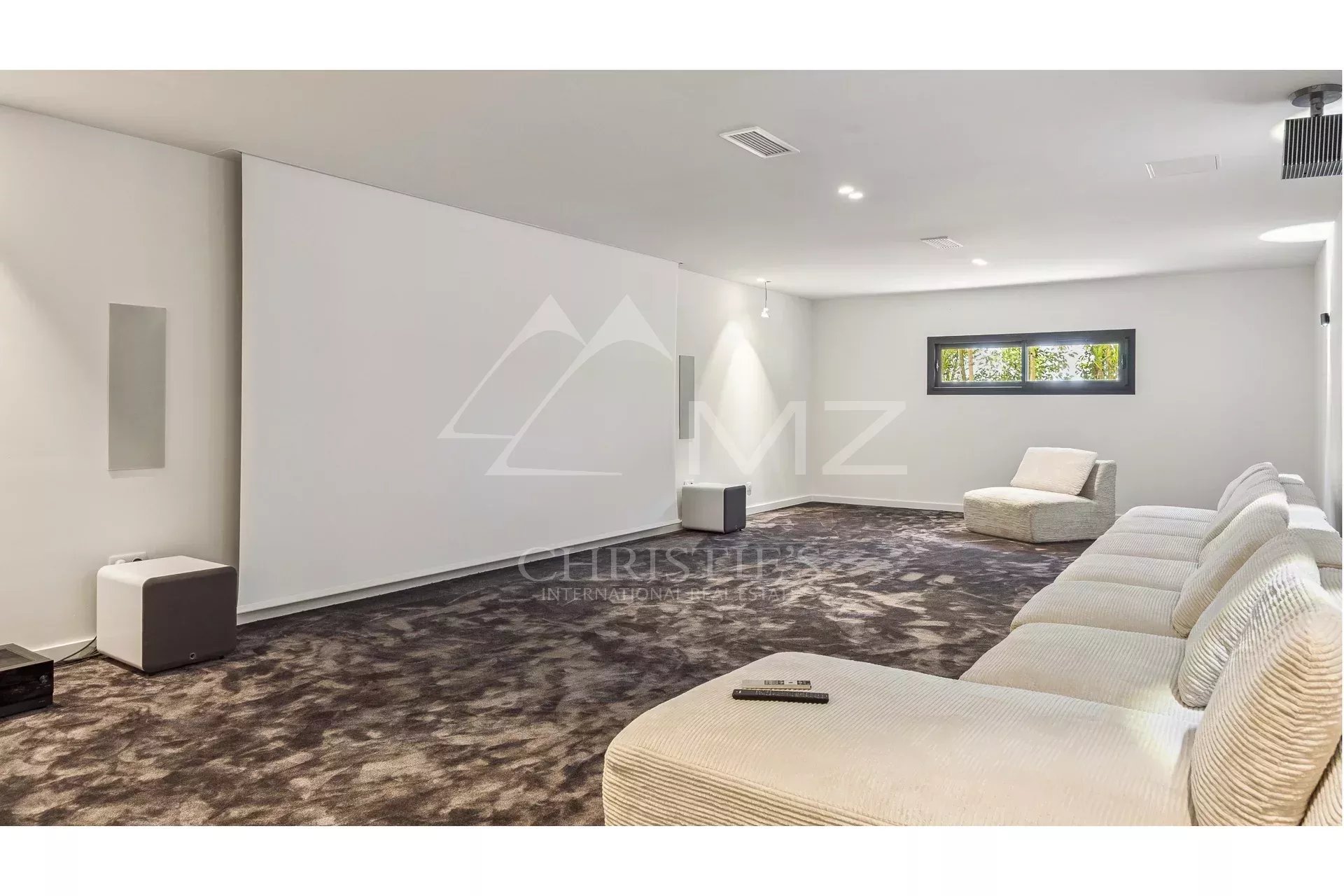 Au sous-sol, vous découvrirez une vaste salle de cinéma privée, parfaite pour des soirées cinéma en famille ou entre amis.