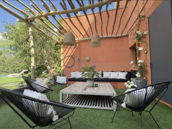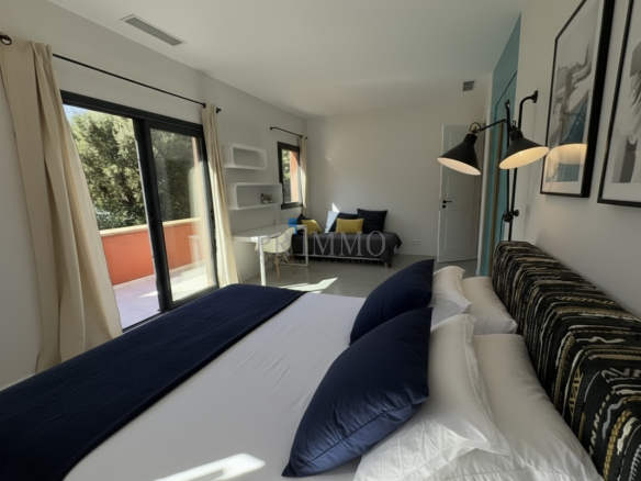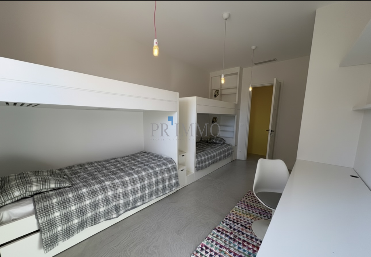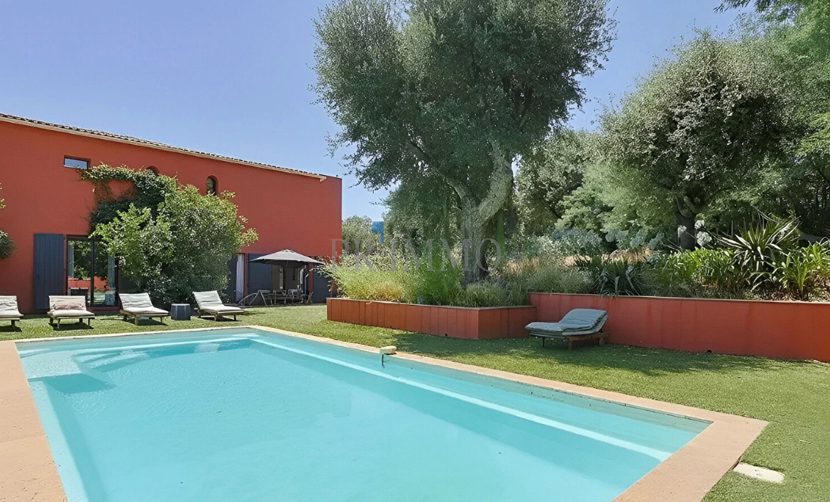 Découvrez cette villa contemporaine de 180 m2 à Beauvallon, à seulement 150 mètres de la mer. Entièrement rénovée, elle allie modernité et confort dans un cadre de vie d’exception. La propriété dispose de cinq chambres, dont une suite parentale et une chambre d’amis en rez-de-chaussée, parfaites pour accueillir famille et amis. Les espaces de vie sont généreux avec deux salons, dont un dédié aux enfants. La cuisine sur mesure, entièrement équipée, invite à des moments de convivialité. Profitez de la piscine et d’un jardin paysager de 900 m2, offrant un havre de paix sans vis-à-vis. Le tout dans un environnement calme, résidentiel et sécurisé. Accédez facilement à une plage privée à pied grâce à un digicode, tout en savourant la vue dégagée sur le jardin. À proximité, le golf de Beauvallon et divers restaurants de plage sont accessibles en quelques minutes de marche. Les extérieurs sont soigneusement aménagés avec des espaces ombragés, une pergola en bois et un coin barbecue couvert, parfaits pour les soirées d’été. Le portail électrique et le stationnement intérieur pour quatre voitures ajoutent à la praticité de cette villa. Les commodités ne manquent pas : un ponton privé pour votre semi-rigide ou un taxi-bateau vers Saint-Tropez, ainsi que la proximité des villages emblématiques du Golfe comme Grimaud et Ramatuelle. Une piste cyclable relie Sainte-Maxime à Saint-Tropez, idéale pour les amateurs de balades. L’accès est facilité par l’aéroport de Toulon à 48 km et celui de Nice à 90 km, ainsi que par la gare des Arcs à 34 km. Un arrêt de bus se trouve à seulement trois minutes de la maison. Cette villa est un véritable bijou à découvrir, alliant confort moderne et cadre idyllique.