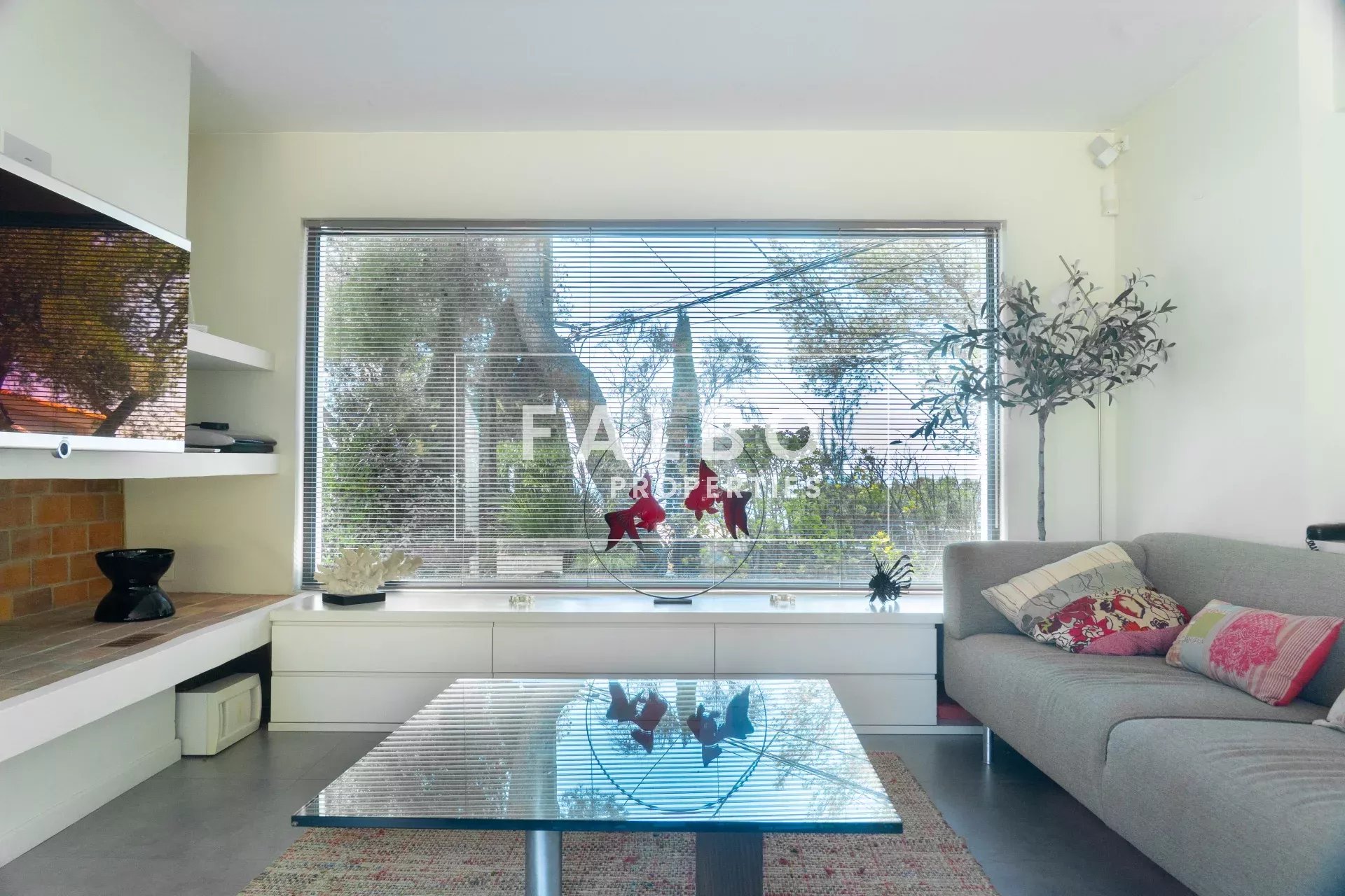 Le terrain en situation dominante et à l’abri des regard est prolongé par une pinède voisine. un parking privatif pour quatre véhicules plus un garage deux voitures en sous- sol.