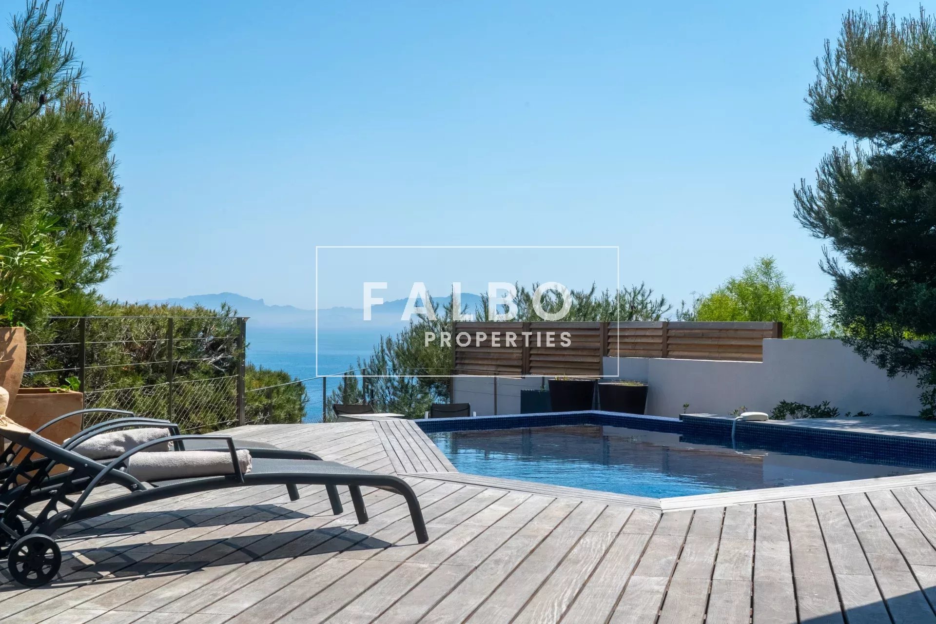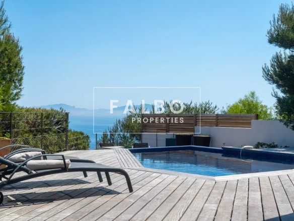 Cette superbe villa d’architecte récente offre des vues mer panoramiques absolument époustouflantes sur la mer et les iles de Marseille de chacune des pièces de la maison et un accès direct et exclusif. à pieds à la calanque.