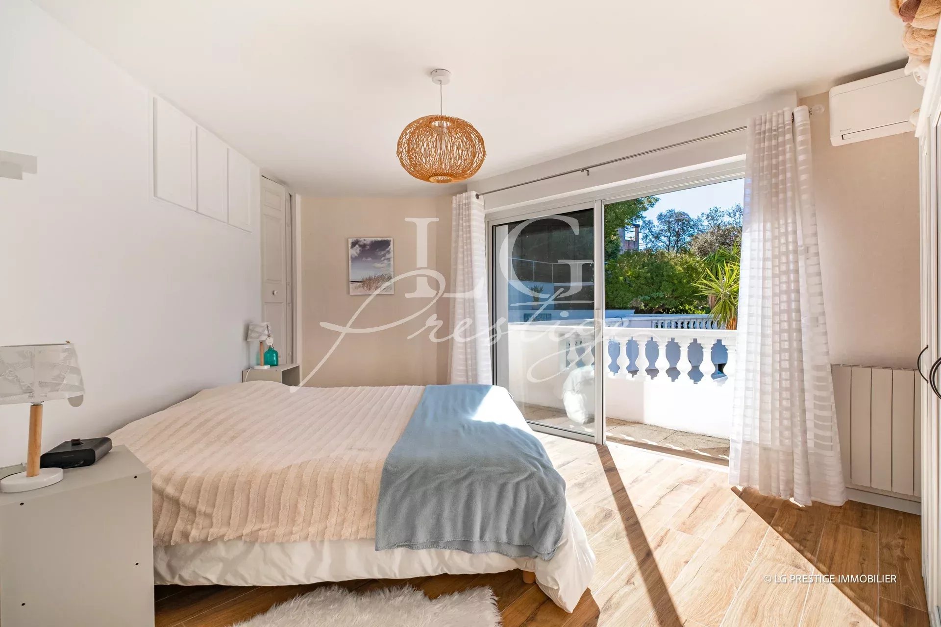 Implantée sur un grand terrain arboré, la villa garantit intimité et ensoleillement optimal tout au long de la journée. Elle dispose également de plusieurs stationnements ainsi que d’une belle piscine parfaitement intégrée à son environnement.