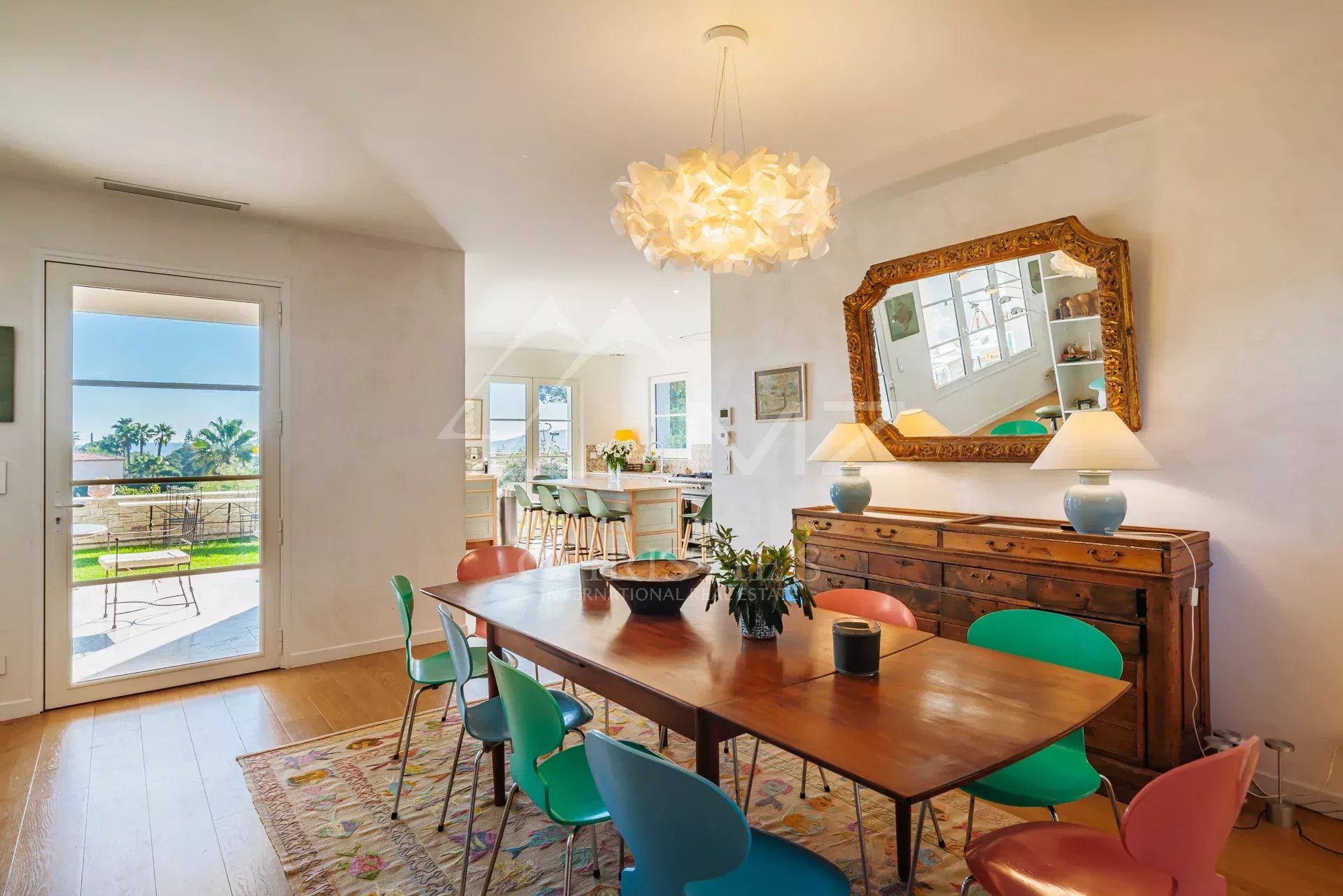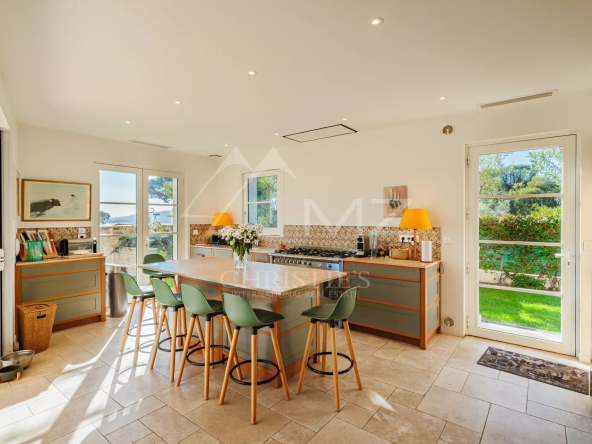Le rez-de-chaussée, comprend une cuisine avec une arrière-cuisine ainsi qu’une salle à manger et un salon spacieux. Ces espaces de vie s’ouvrent directement sur une terrasse panoramique, idéale pour profiter de la vue mer.