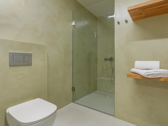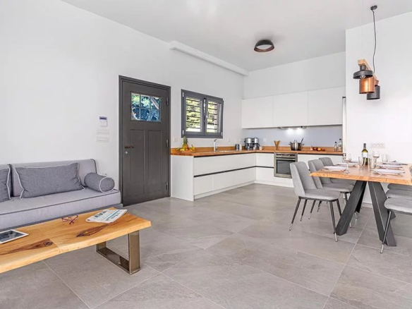 Salon, cuisine, une chambre, deux grands placards et une salle de bain confortable. Il est possible de créer une deuxième pièce d’environ 25 mètres carrés portant le total des mètres carrés de la maison à 90m²