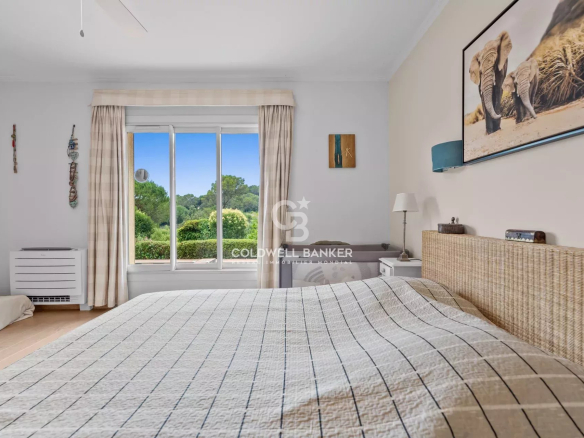 Le vaste séjour, baigné de lumière grâce à de larges baies vitrées, s’ouvre sur un magnifique extérieur avec piscine chauffée, une vue dégagée et un aperçu sur le golf de Mougins.