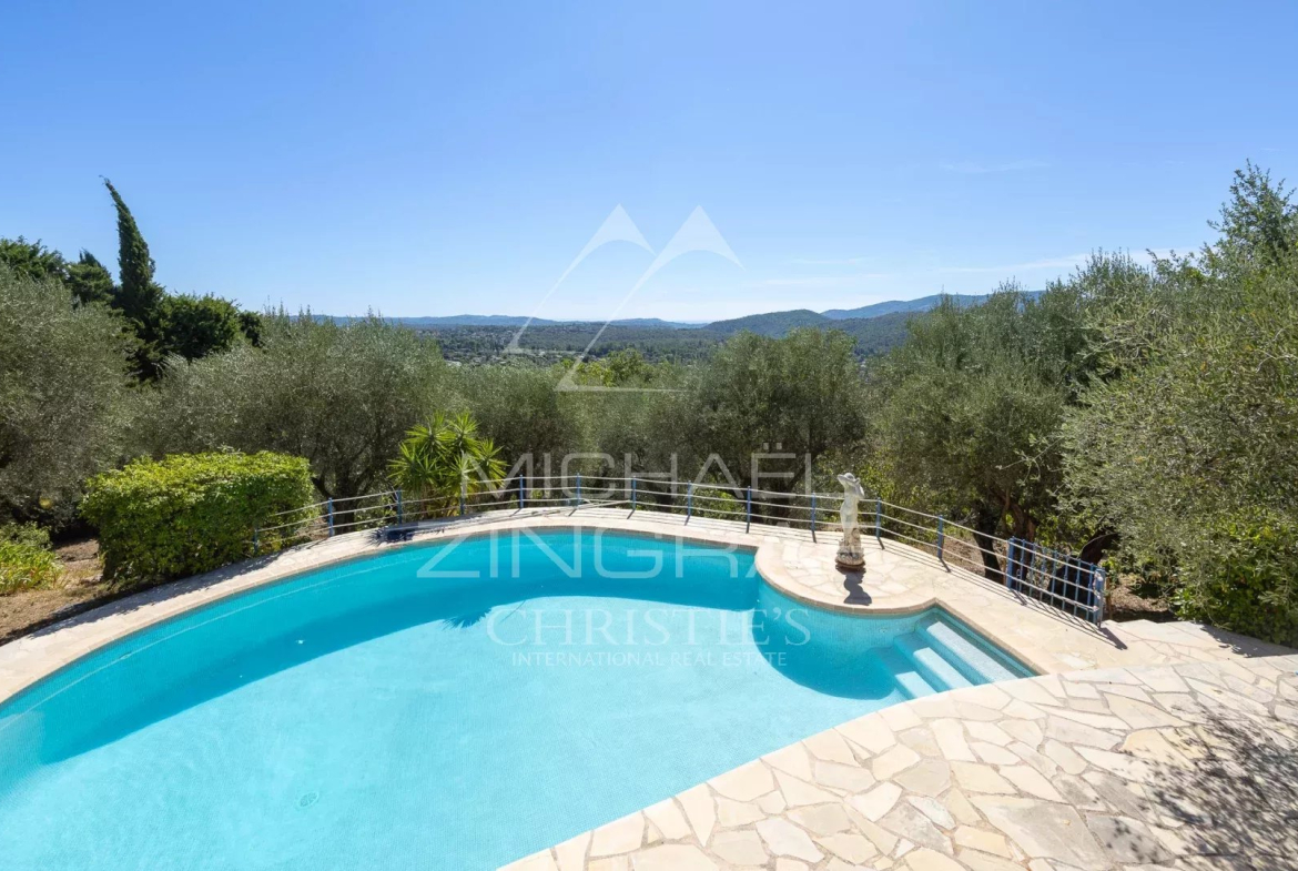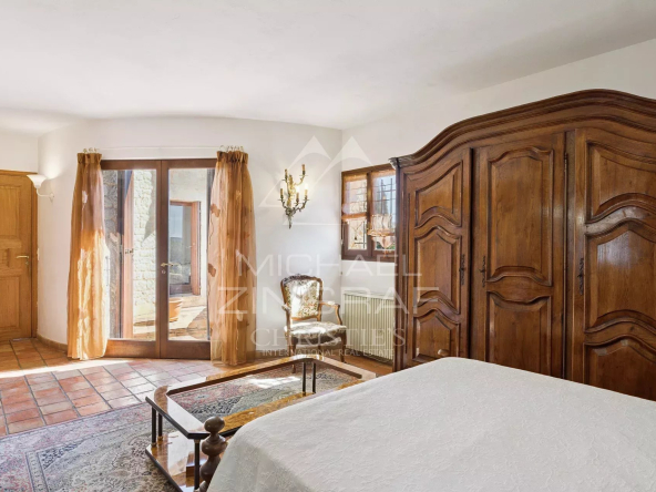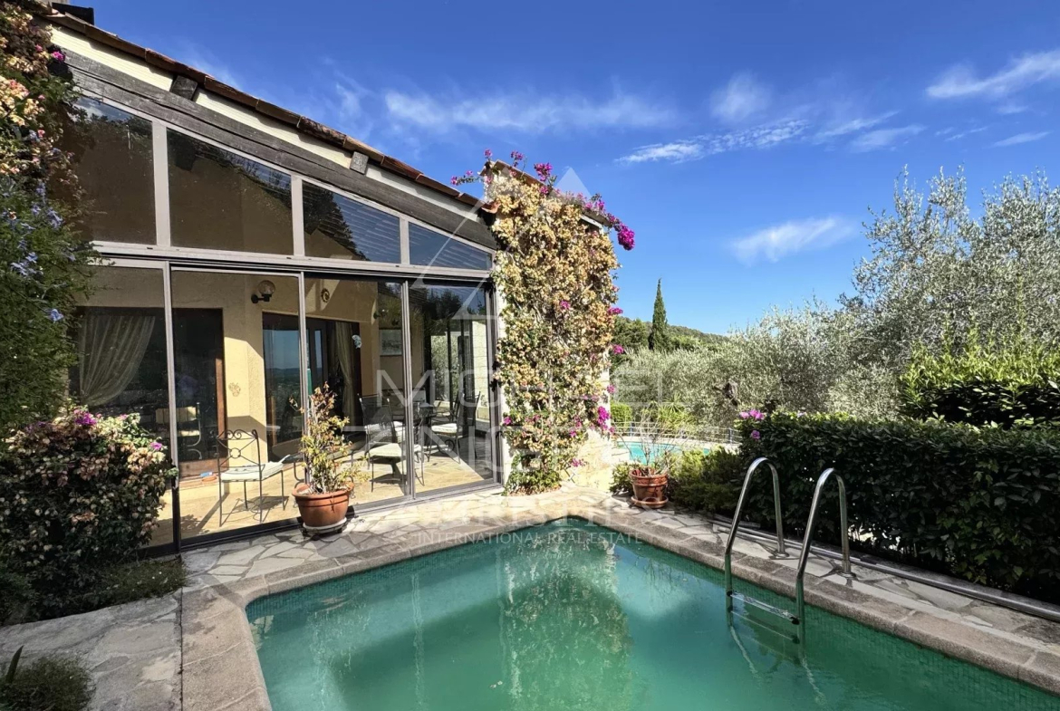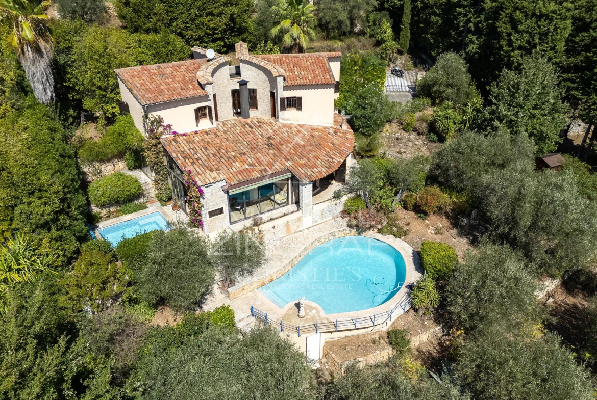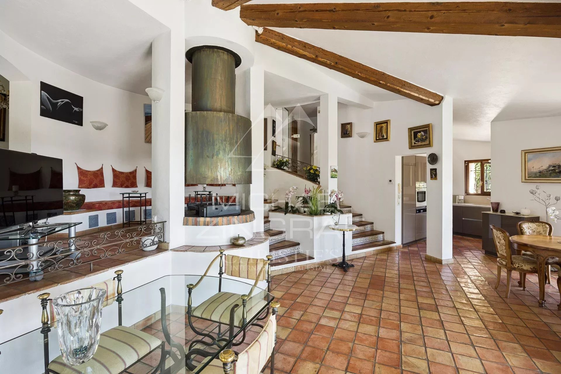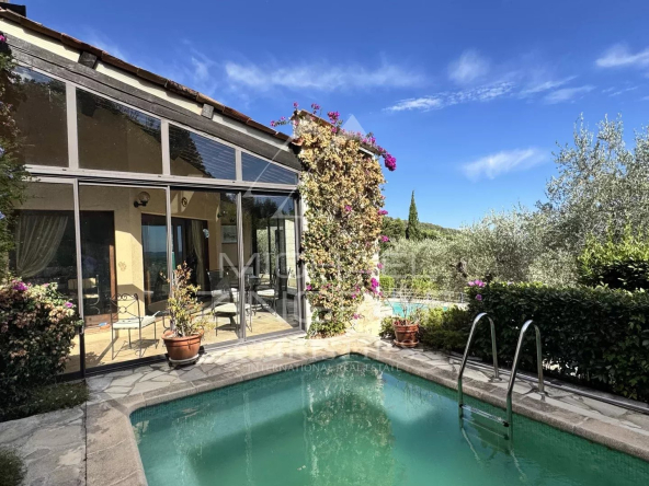 Située au calme, au fond d’une impasse, la propriété domine les collines et l’oliveraie, avec en perspective la ligne de mer.