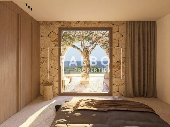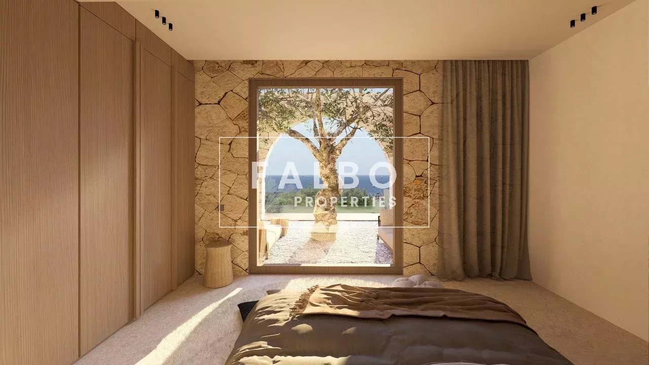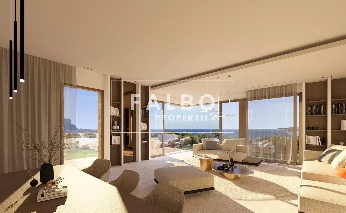 Entièrement de plain pieds avec réception cuisine ouverte de 74 m2 profitant avec de très belles hauteurs de plafonds, de larges baies avec transparence en mer et piscine.