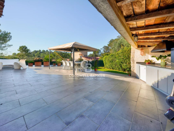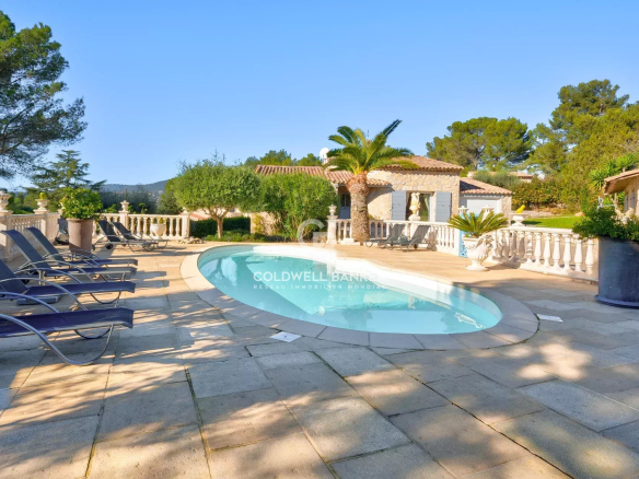 Magnifique villa en pierres de taille. Située dans un quartier résidentiel très recherché de Peymeinade, cette villa de charme, sans vis-à-vis, bénéficie d’une vue dégagée et est implantée au calme dans une impasse. La propriété s’étend sur un terrain de 1 380 m² et offre une surface habitable de 185 m² (pour une surface totale de 245 m²).