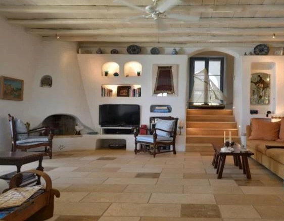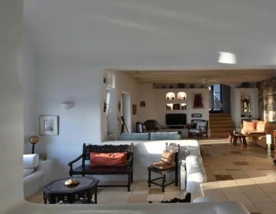 La villa se trouve dans la partie la mieux protégée et la plus désirable de Paros. La maison principale comprend un immense salon double qui fait face à la mer, ainsi qu’une petite salle à manger et une belle cuisine cycladique. À quelques pas de là se trouvent deux chambres avec salles de bains attenantes.