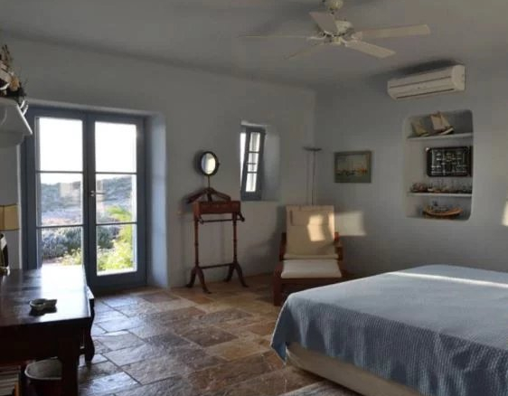 La maison d’amis comprend un salon, deux chambres, une salle de bains et une terrasse avec vue sur la mer. Le troisième bâtiment contient une seule chambre avec sa salle de bains.