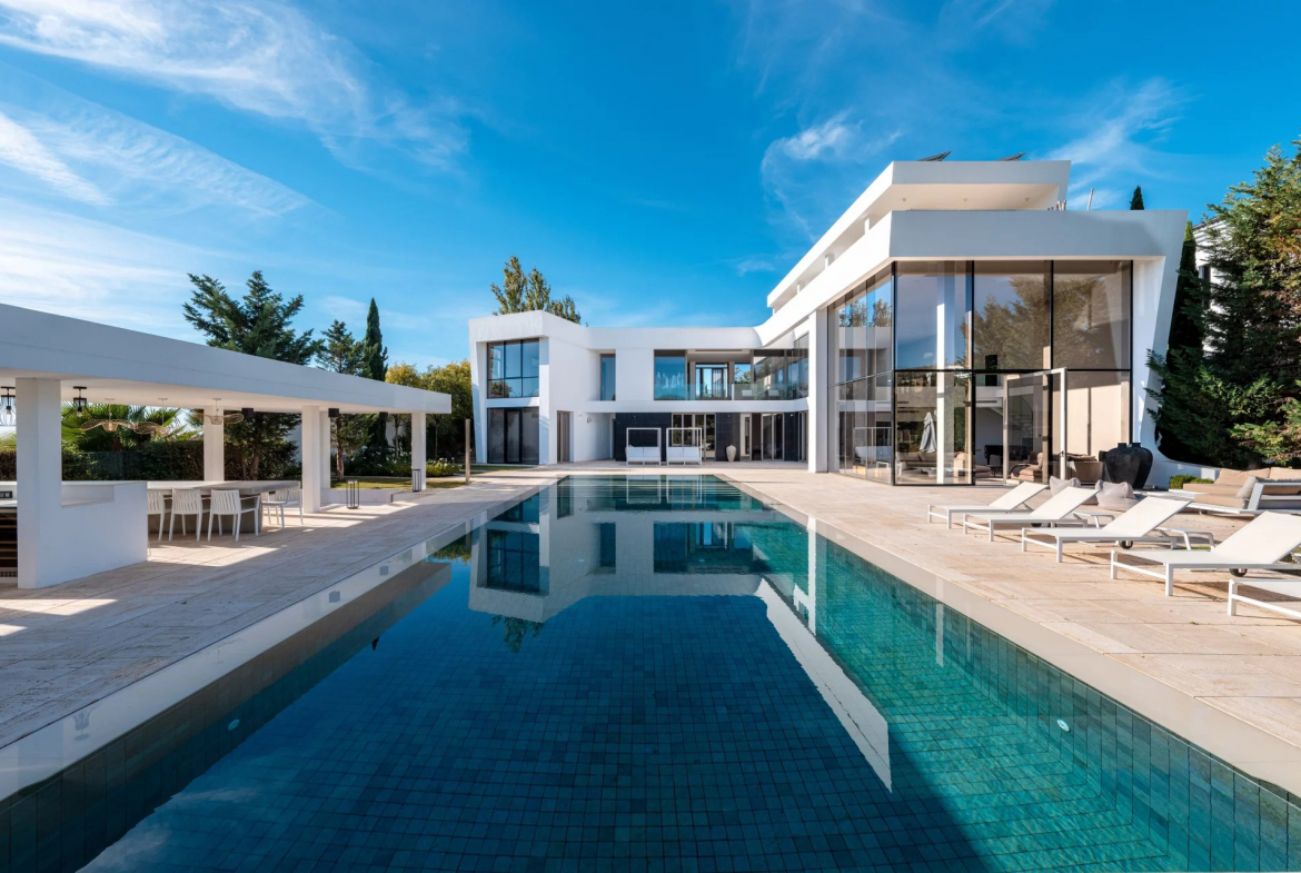 Cette villa haut de gamme de 6 chambres de style contemporain à vendre à Los Flamingos, Benahavis, offre un nouveau concept de luxe moderne.